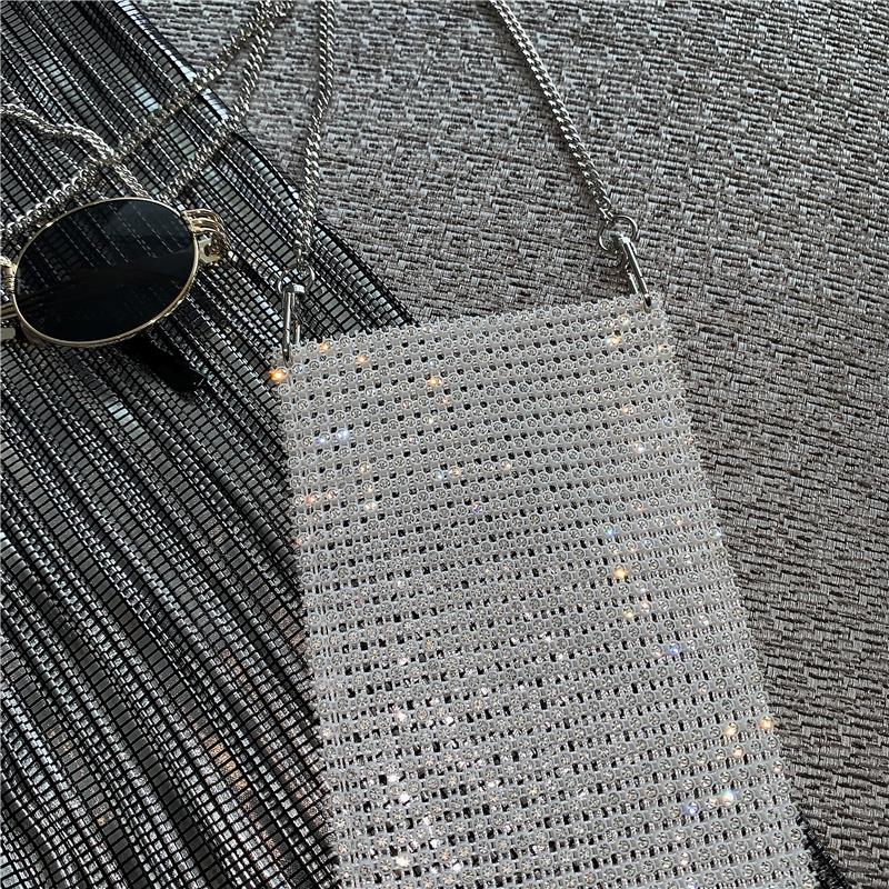 新款韓版網紅風百搭閃閃單肩斜跨手機包休閑亮鉆女包時尚鏈條小包