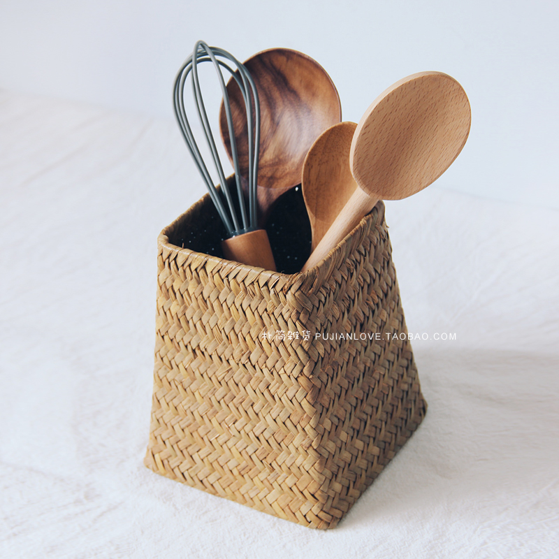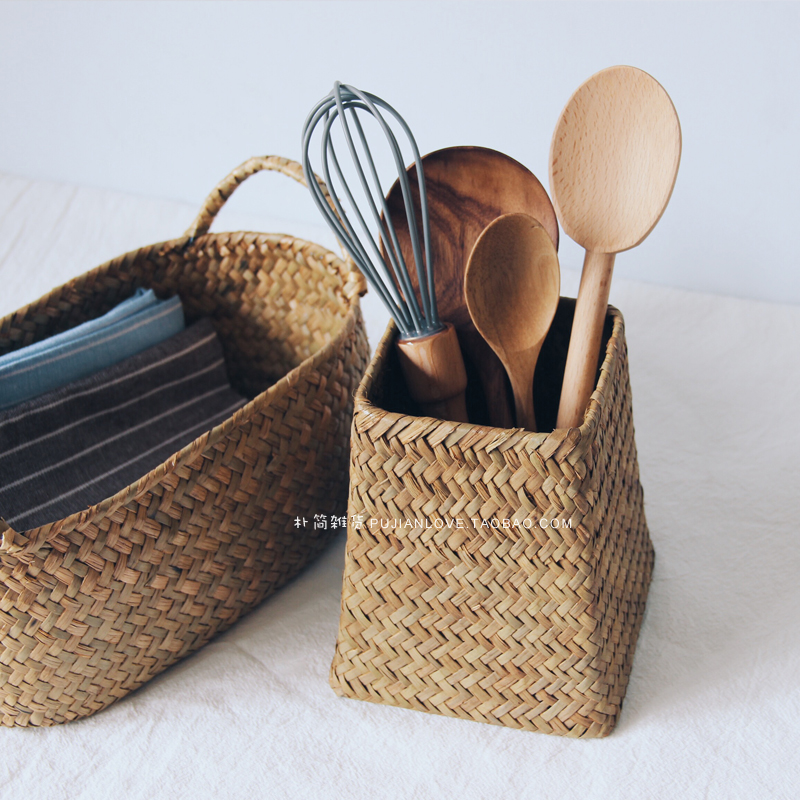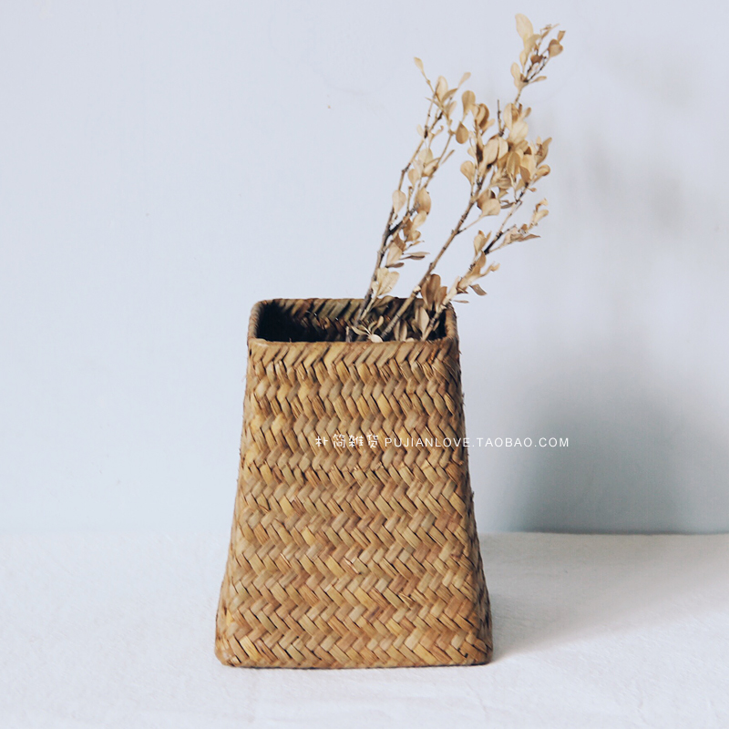 樸簡 日式手工海草編織收納籃筐 桌面雜物籃花器 筆筒儲物筐