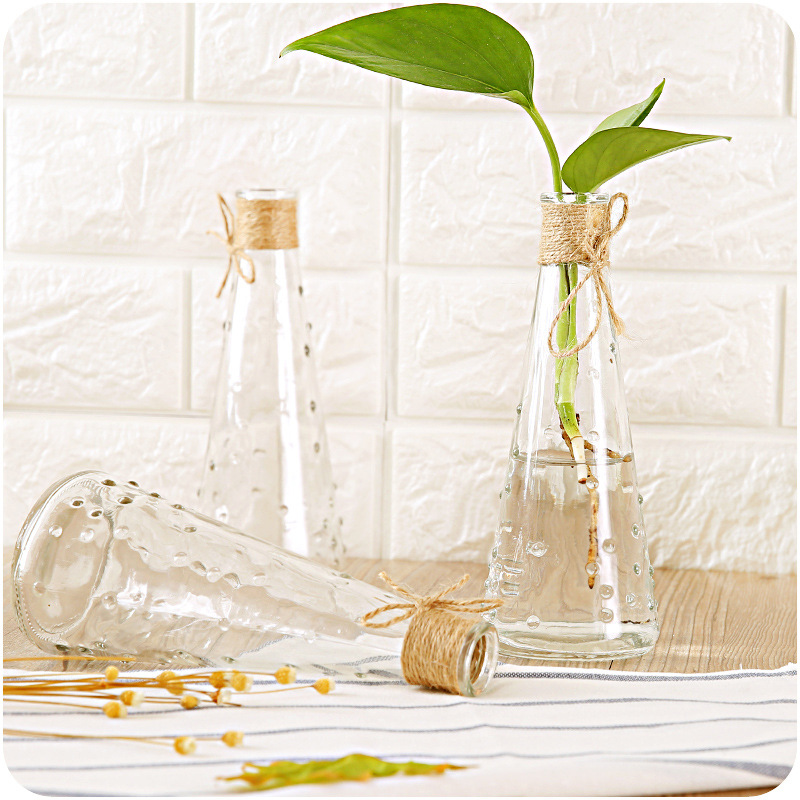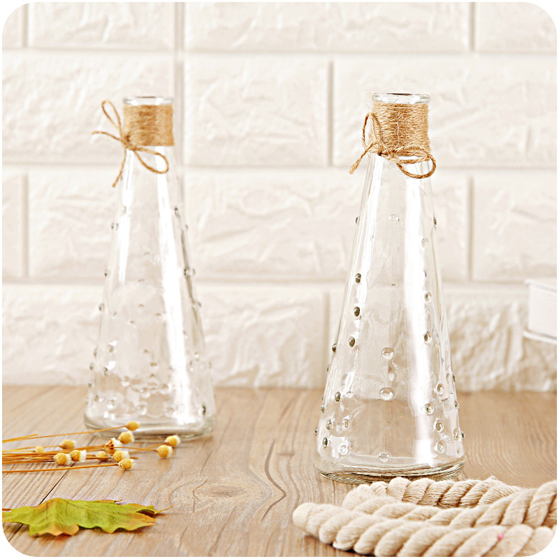 / 居家辦公創意簡約小花瓶錐形麻點透明桌面插花瓶清新雨點玻璃加厚