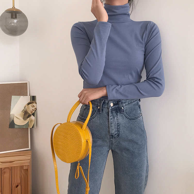 / 秋裝新款韓版百搭復古chicT恤純色修身顯瘦長袖女裝高領打底上衣