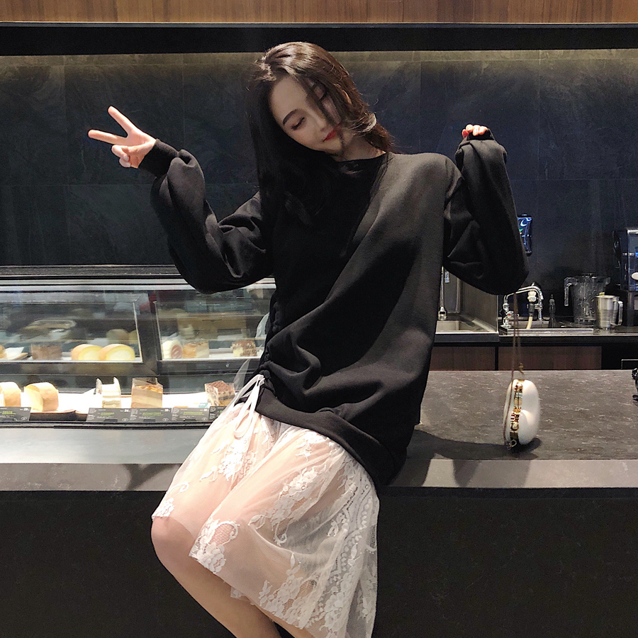 / 港味加絨抽繩衛衣拼接蕾絲裙擺