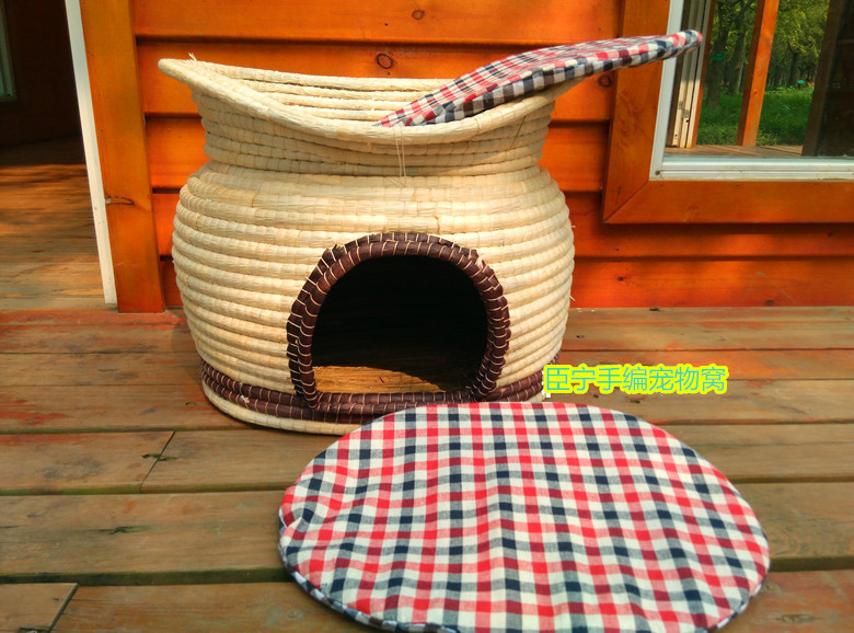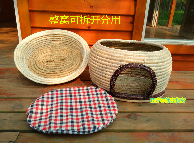 全部采用天然材質,四季可使用,天然野席草外層包裹天然玉米皮材質,環保健康帶來天然的涼爽,搭配可拆洗棉麻布料海綿墊,小寵物們可以睡的舒舒服服,清洗更無擔憂!
