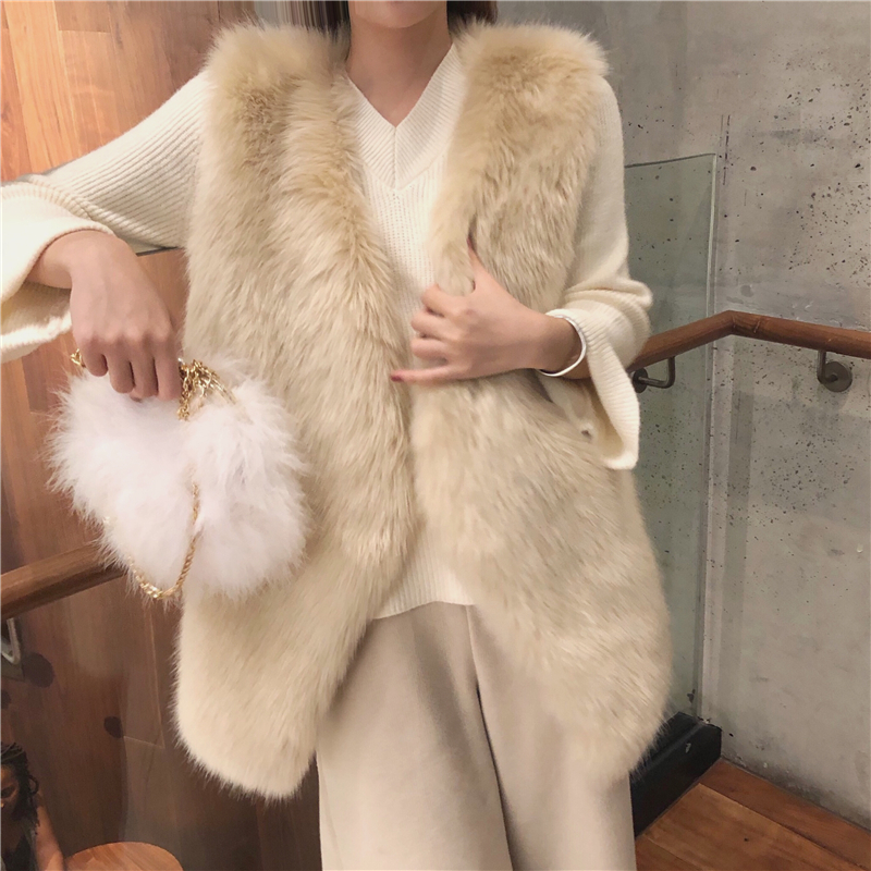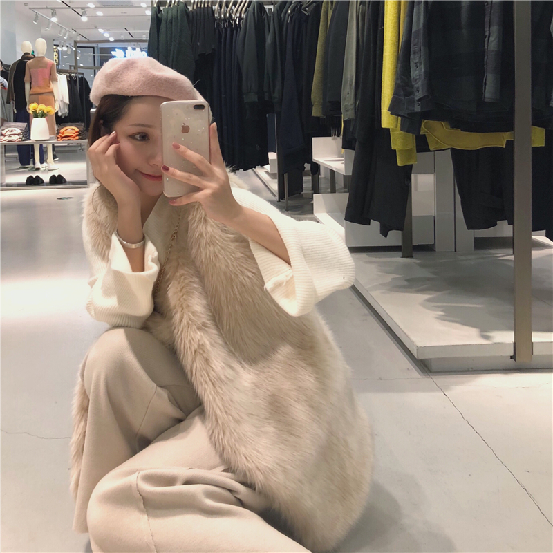 白色毛衣|杏色闊腿褲|杏色毛毛馬甲