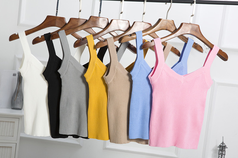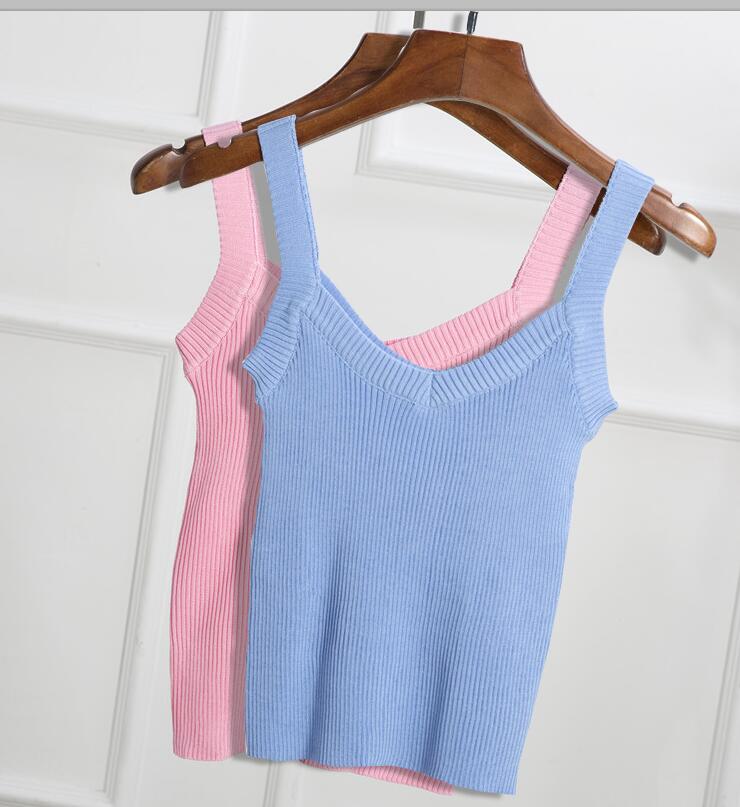 / 夏季新款 韓版吊帶V領顯瘦修身彈力打底衫女裝短款百搭針織背心潮
