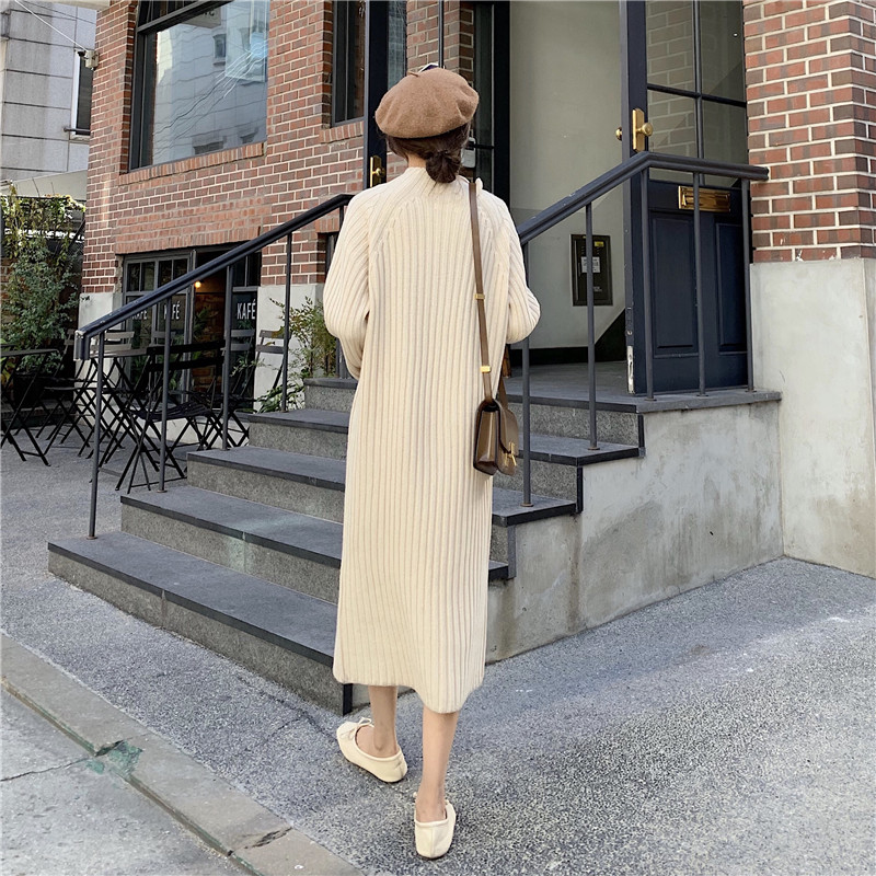 / 連衣裙女2018秋冬新款修身顯瘦半高領坑條長裙針織打底內搭毛衣裙