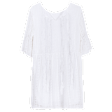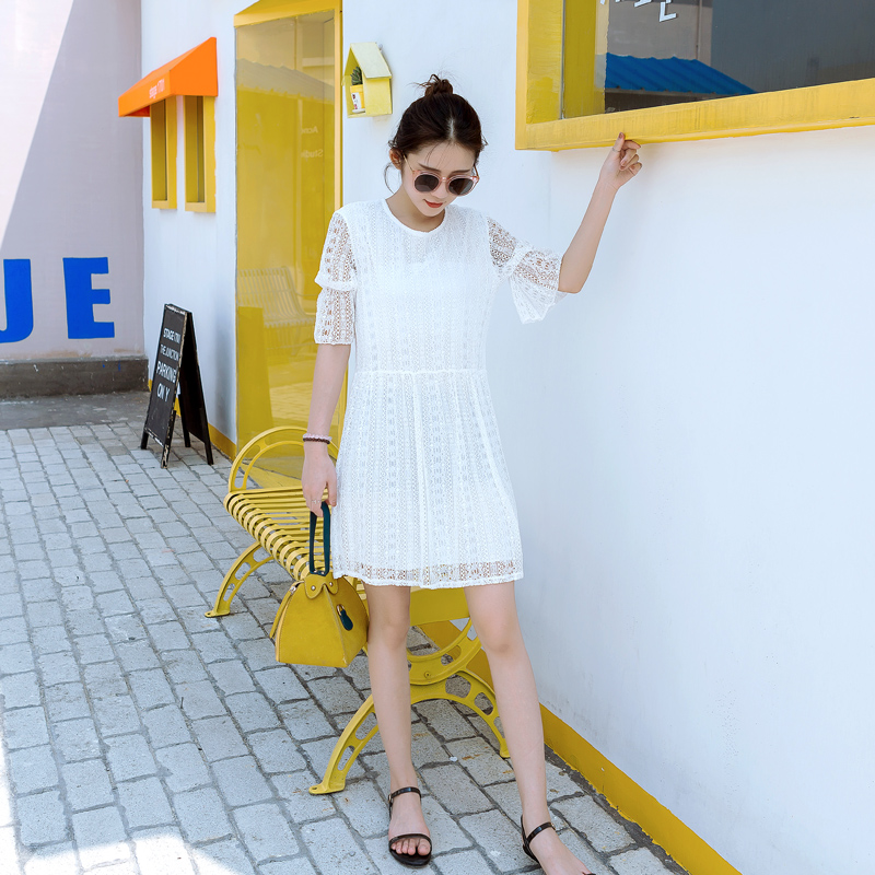 蕾絲連衣裙后背是兩排系帶的設計,采用撞色搭配設計