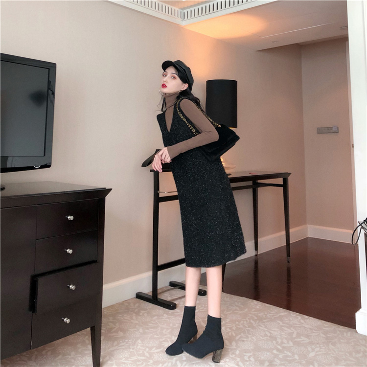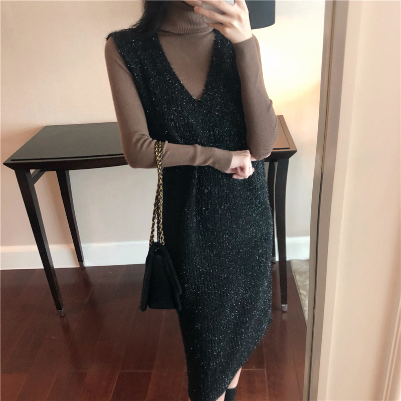 / 港味新款女裝時尚寬松亮閃針織長裙加厚高領毛衣時髦套裝兩件套潮