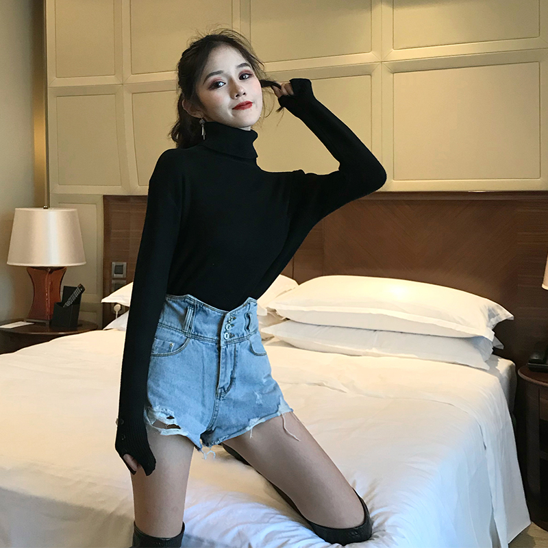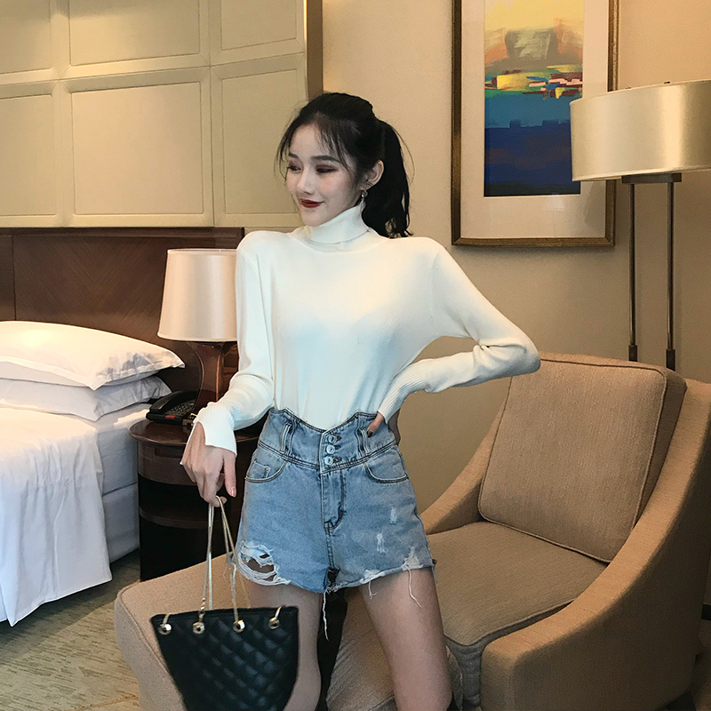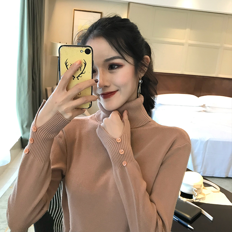 / 港味復古chic新款秋冬韓版百搭上衣女修身顯瘦高領長袖針織打底衫