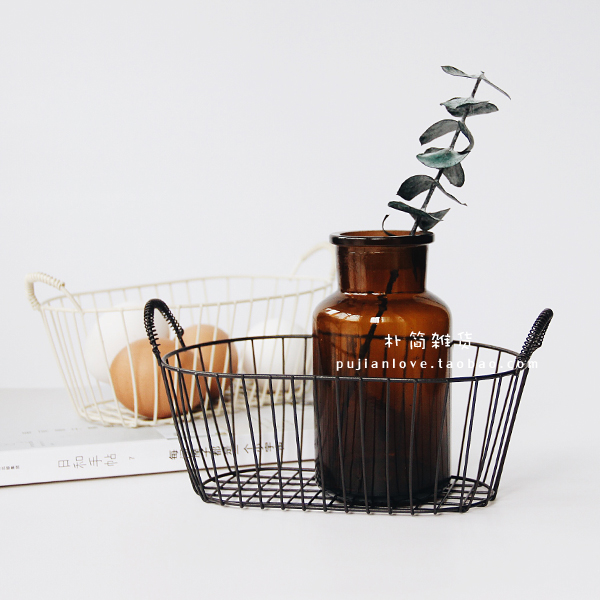 樸簡 復古鐵藝提手收納籃子筐桌面收納置物籃水果面包籃拍攝道具