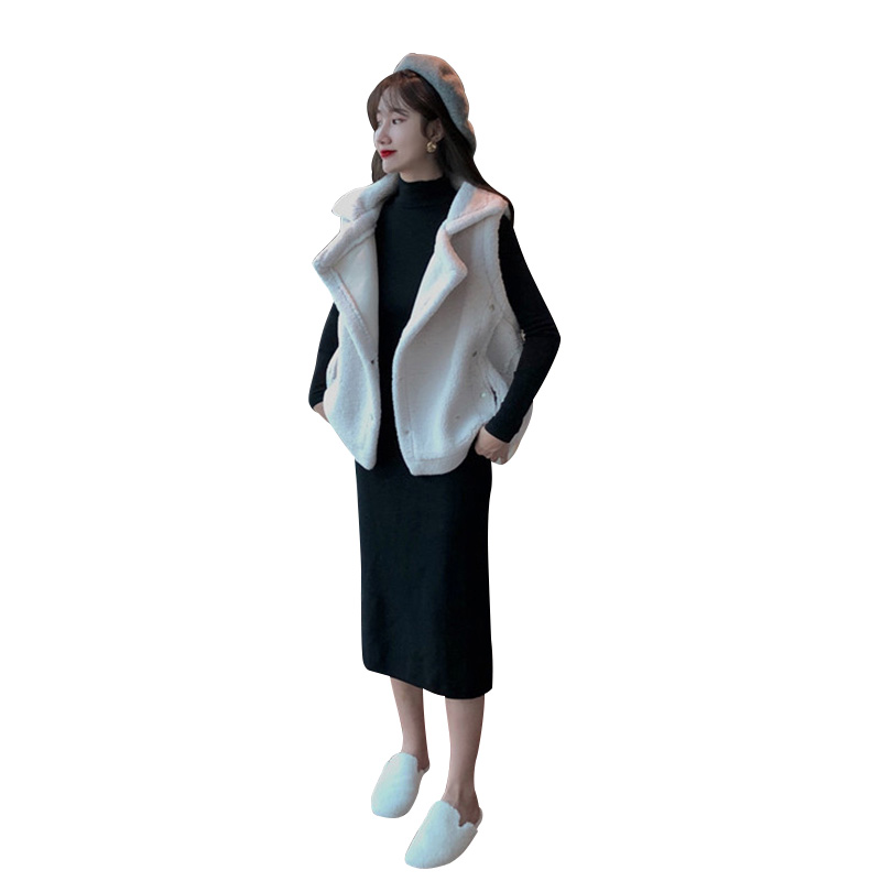 羊羔毛馬夾|黑色打底衫|黑色半身裙