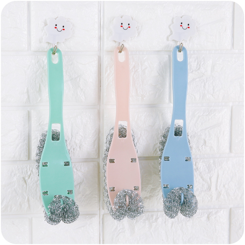 創意帶手柄鋼絲球刷 廚房長柄可拆不臟手不銹鋼洗碗去污清潔刷子