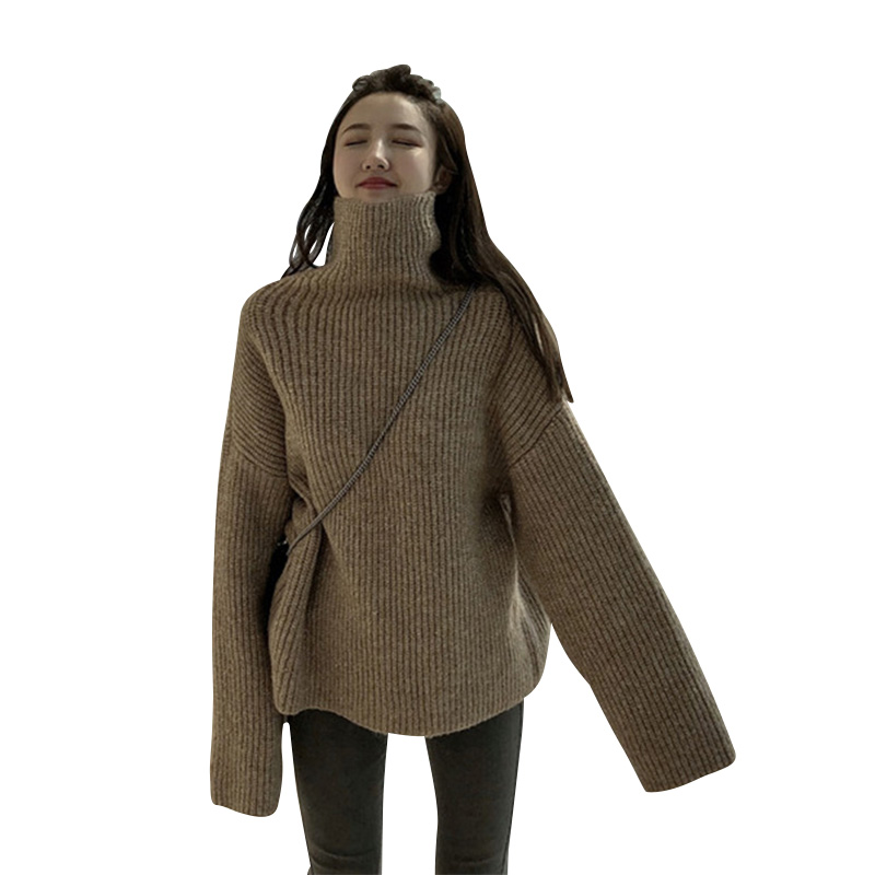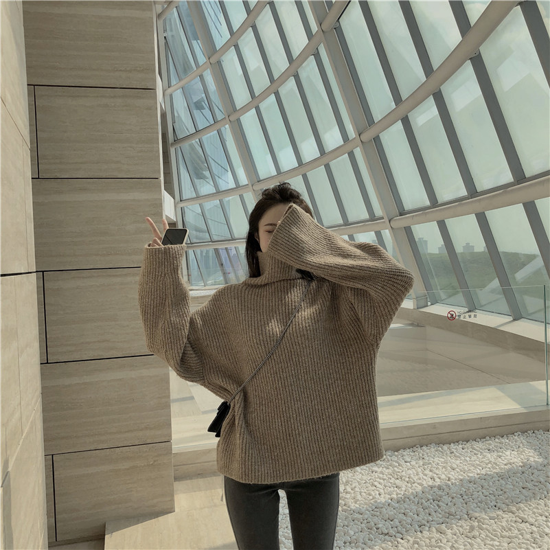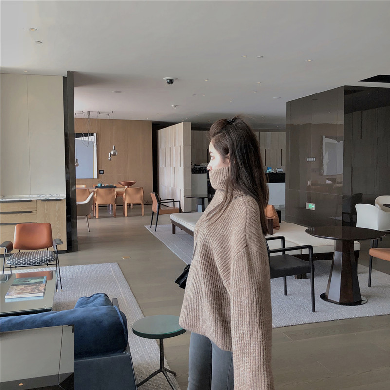 / 港味毛衣女chic慵懶風復古百搭長袖高領套頭寬松簡約針織衫上衣潮