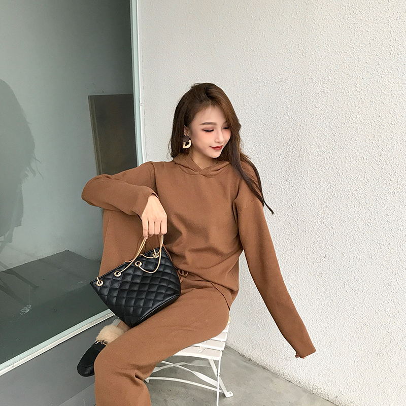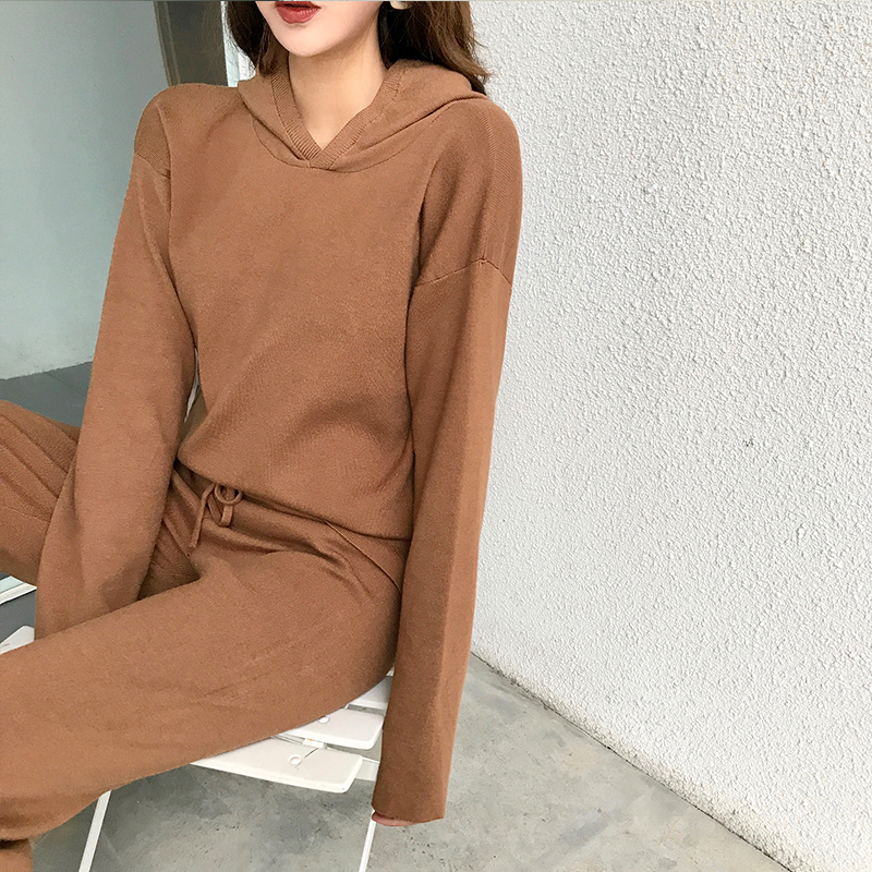 新款韓版寬松顯瘦長袖套頭上衣松緊腰直筒九分褲時尚套裝兩件套女