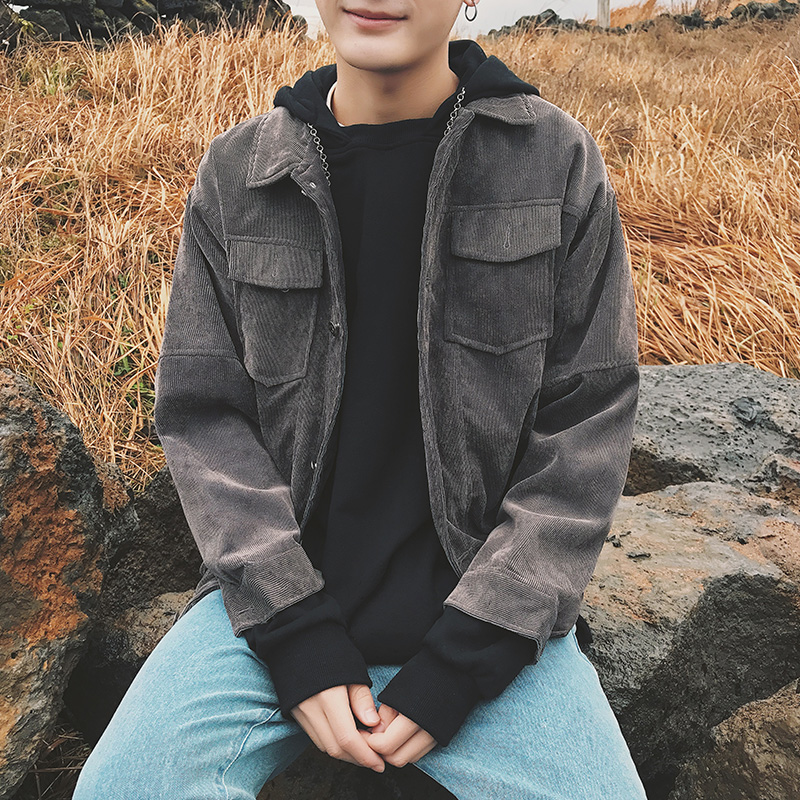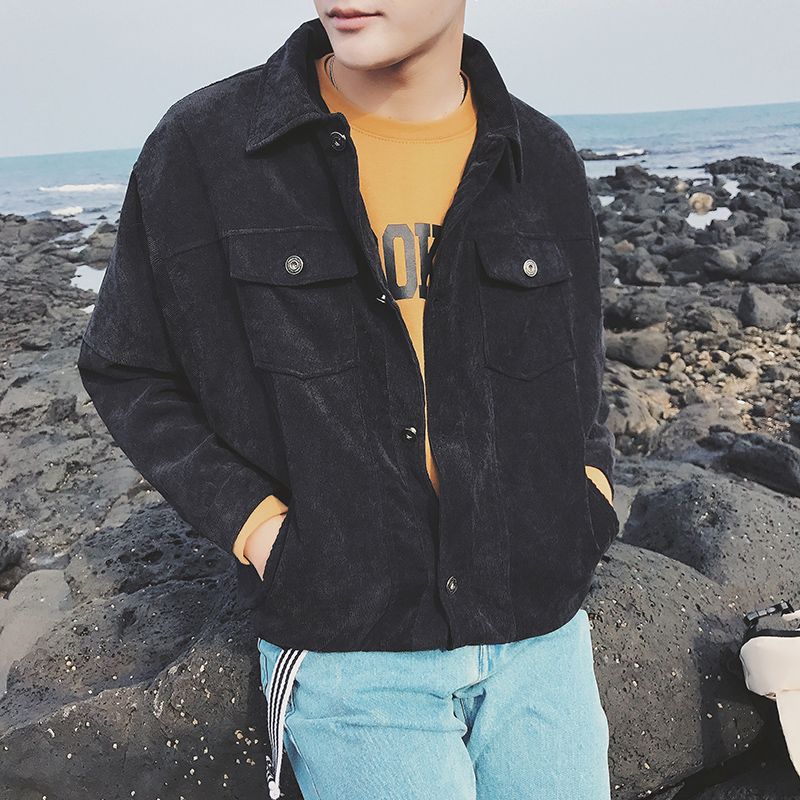 男裝新款字母刺繡燈芯絨韓版男士寬松短款夾克外套