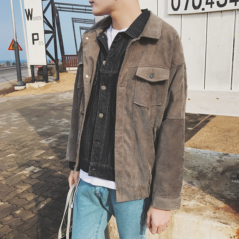 / 男裝新款字母刺繡燈芯絨韓版男士寬松短款夾克外套