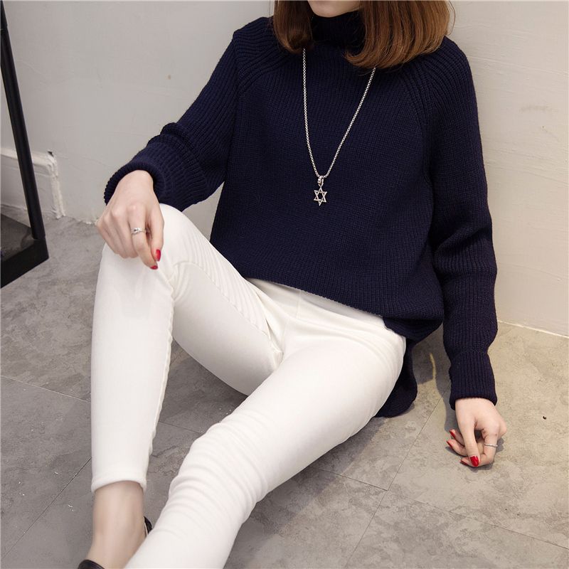 / 新款潮上衣秋冬裝套頭高領針織衫女裝韓版寬松純色冬季打底衫