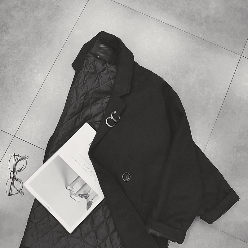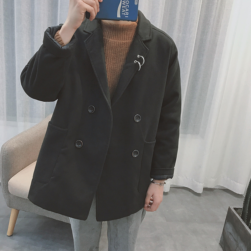 / 男裝港風加厚夾棉毛呢外套男士寬松雙排扣呢料大衣