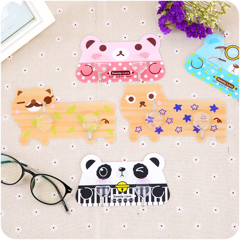 可愛卡通廚房二連勾粘膠掛鉤門后免打孔無痕粘鉤掛衣架可重復使用