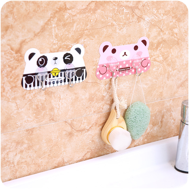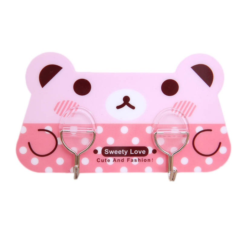 / 可愛卡通廚房二連勾粘膠掛鉤門后免打孔無痕粘鉤掛衣架可重復使用
