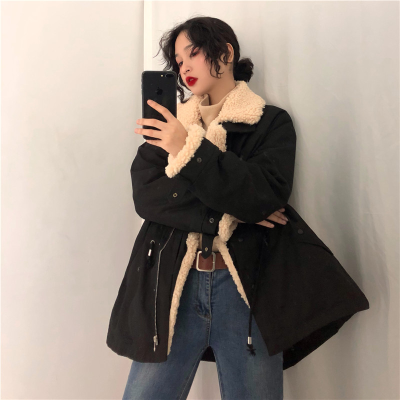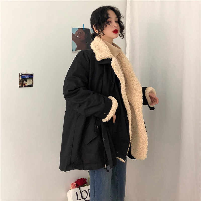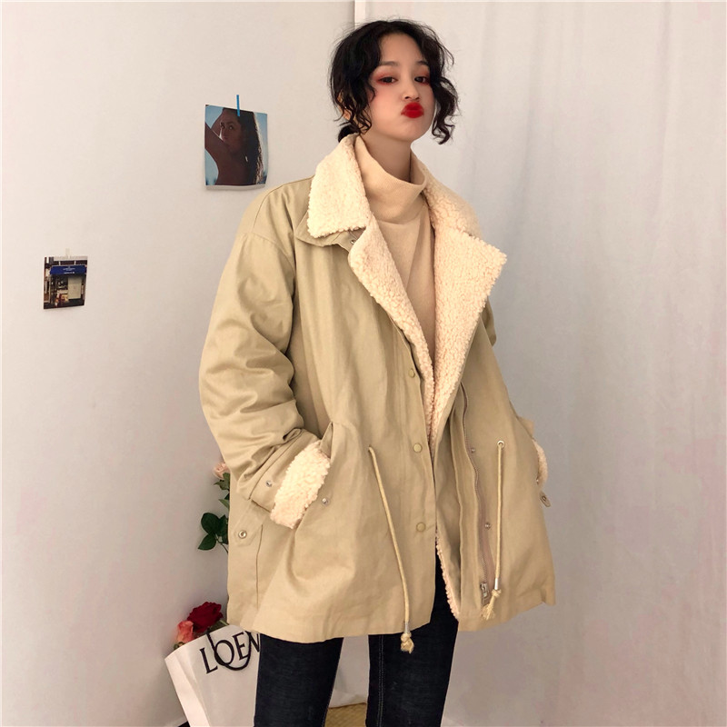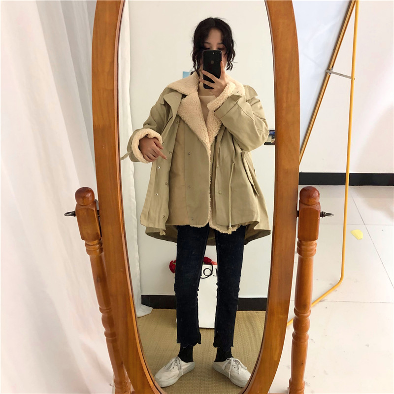 / 棉服女秋冬新款韓版復古百搭chic學院風拼接毛呢寬松休閑學生外套