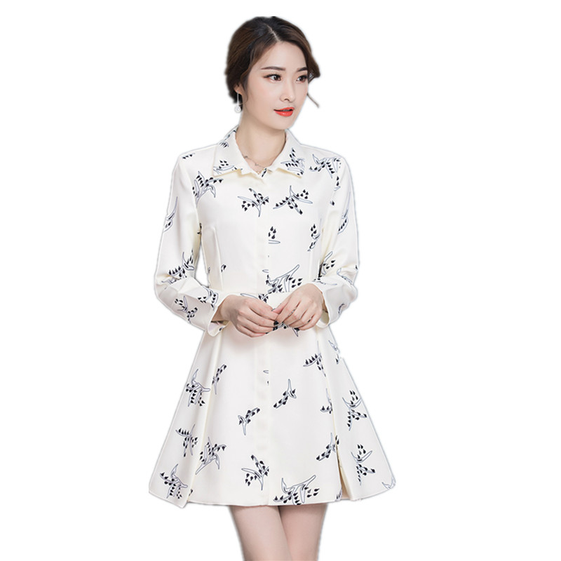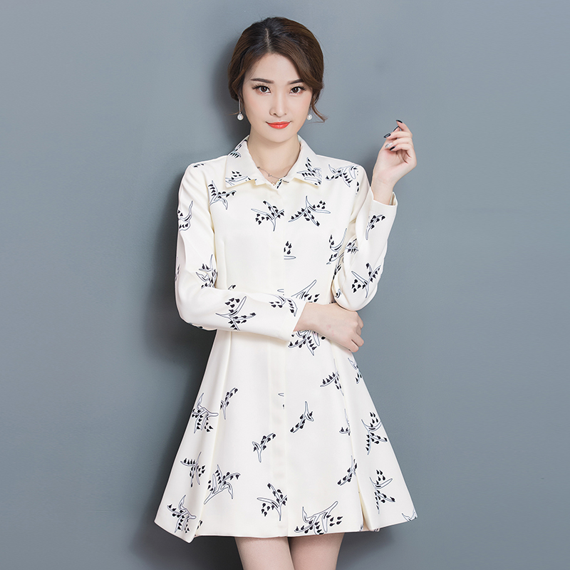 / 春季新款韓版碎花氣質修身顯瘦長袖印花時尚連衣裙外套A字裙