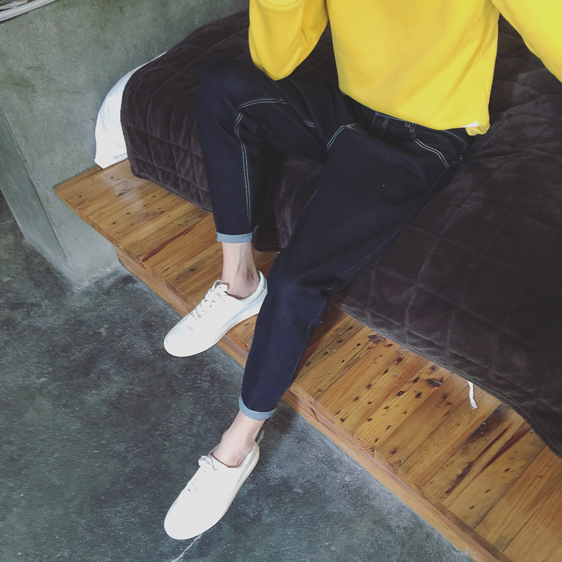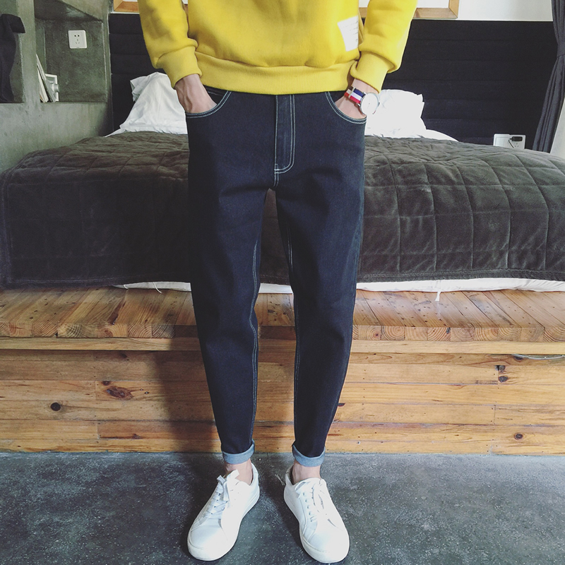 / 秋季新款港風哈倫褲版型休閑牛仔褲錐形男士小腳褲