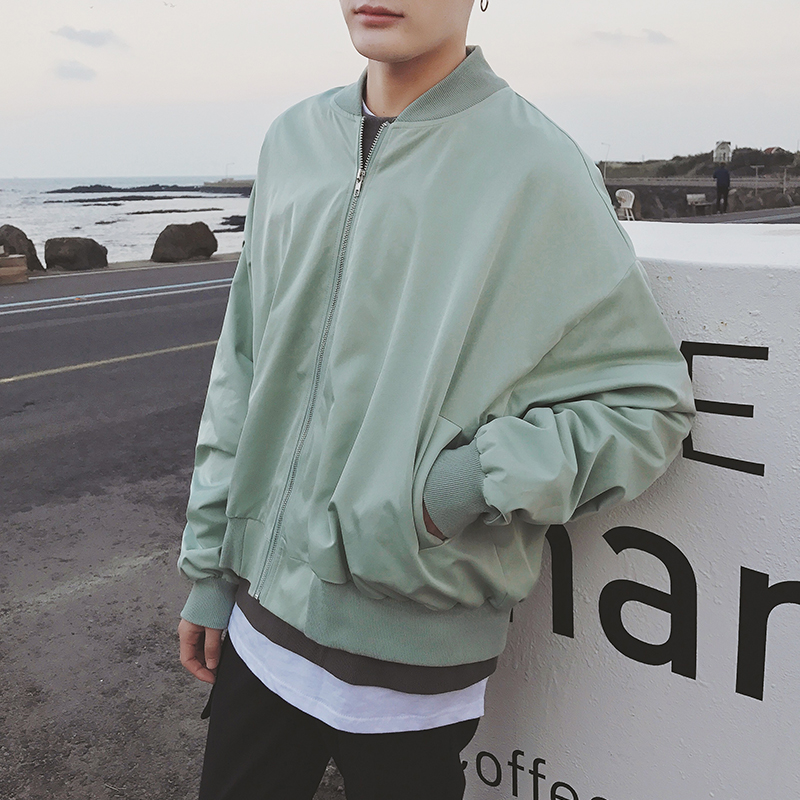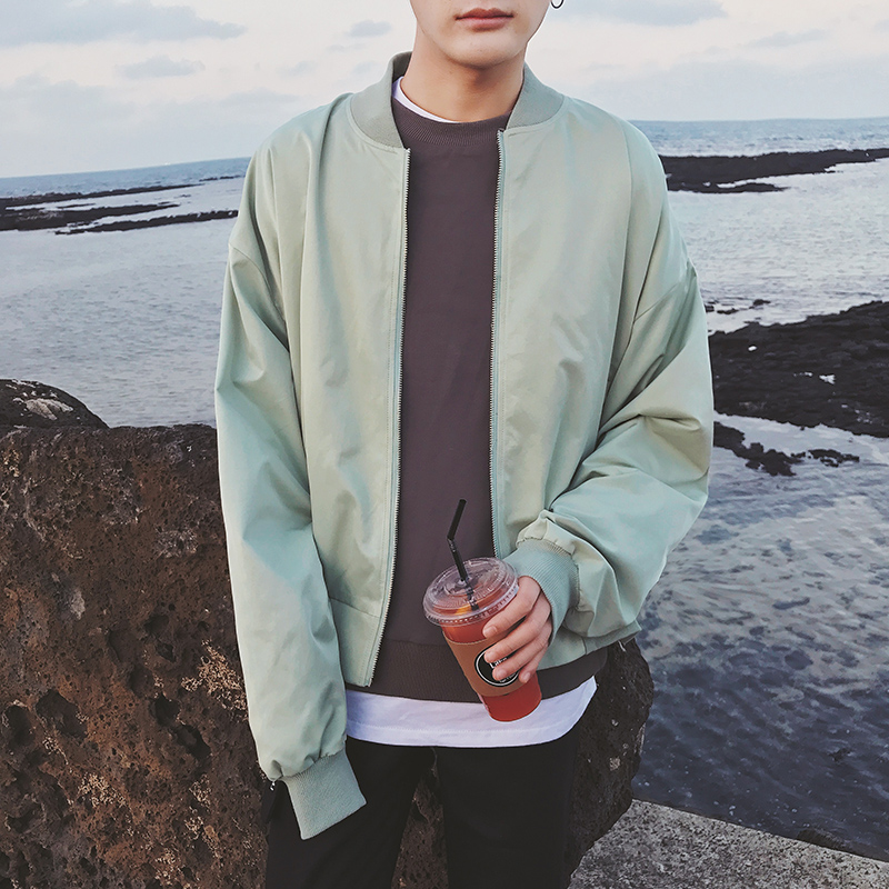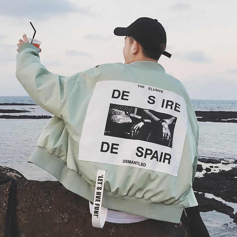 / 男裝歐美后背銀行寬松版男士棒球領短款夾克外套