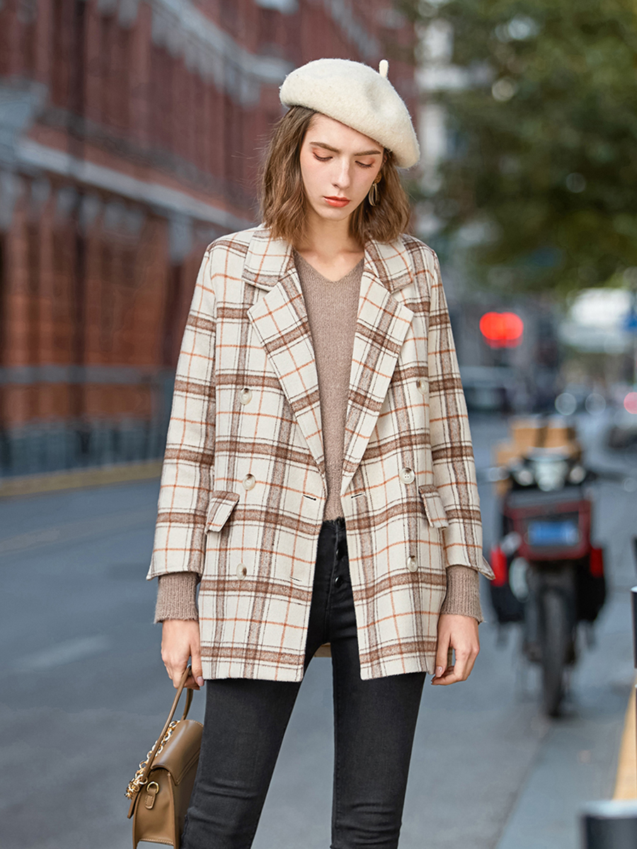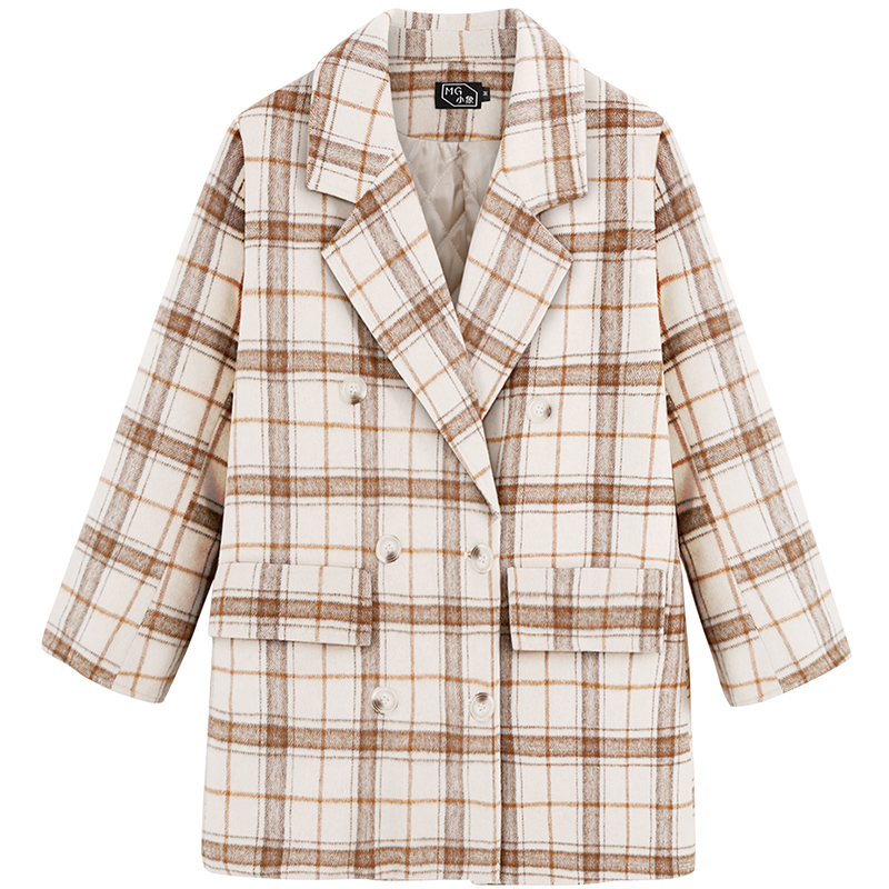 MG小象流行格子毛呢外套女時尚寬松2018冬季新款港味復古呢子大衣