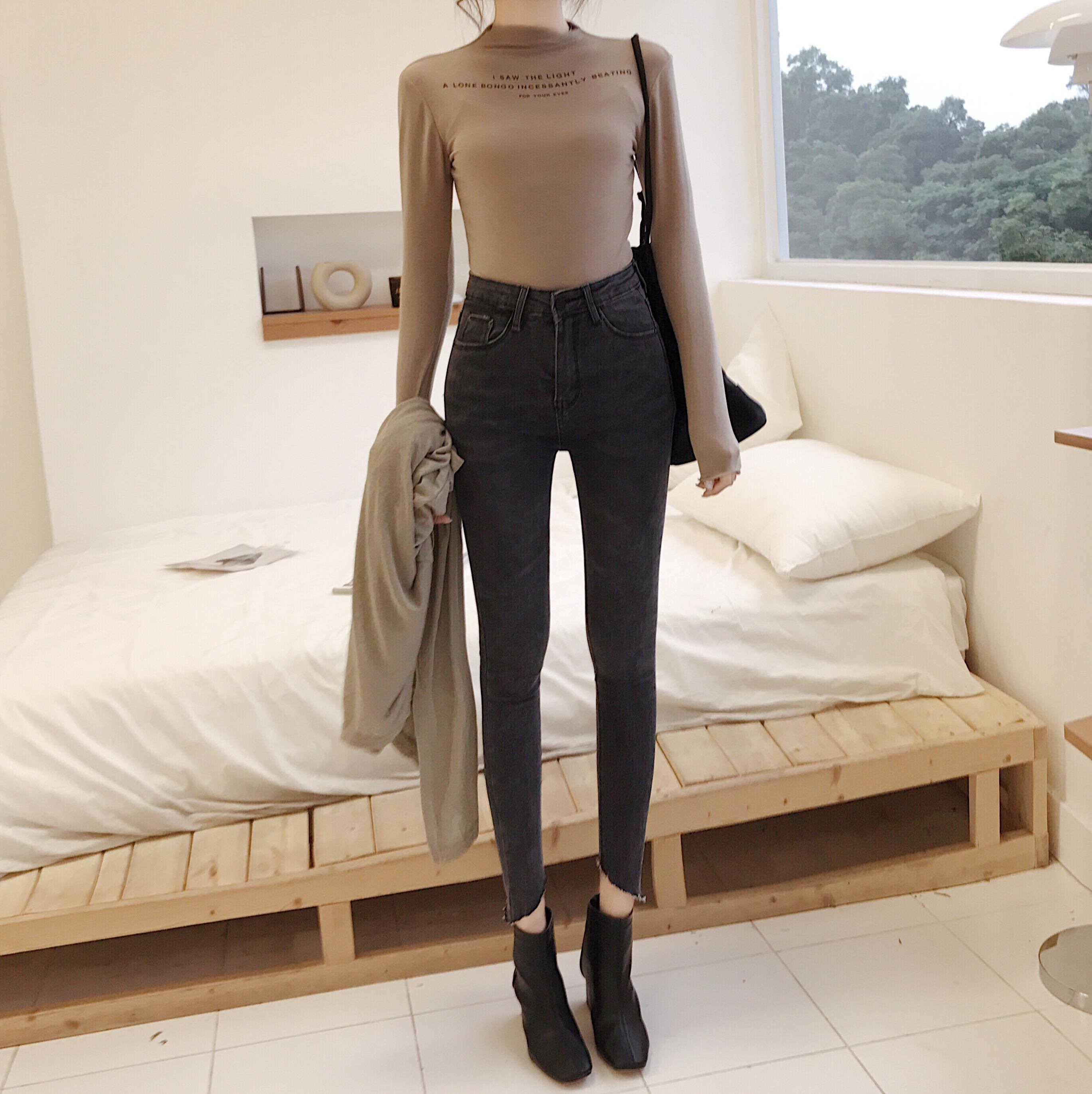 2018秋冬新款chic韓國高腰彈力牛仔褲百搭顯瘦九分褲小腳鉛筆褲女