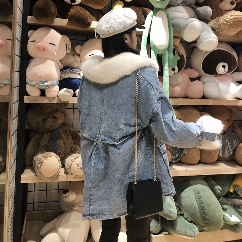 港味牛仔大衣新款時尚氣質冬季大毛領毛毛袖學生百搭可愛收腰外套