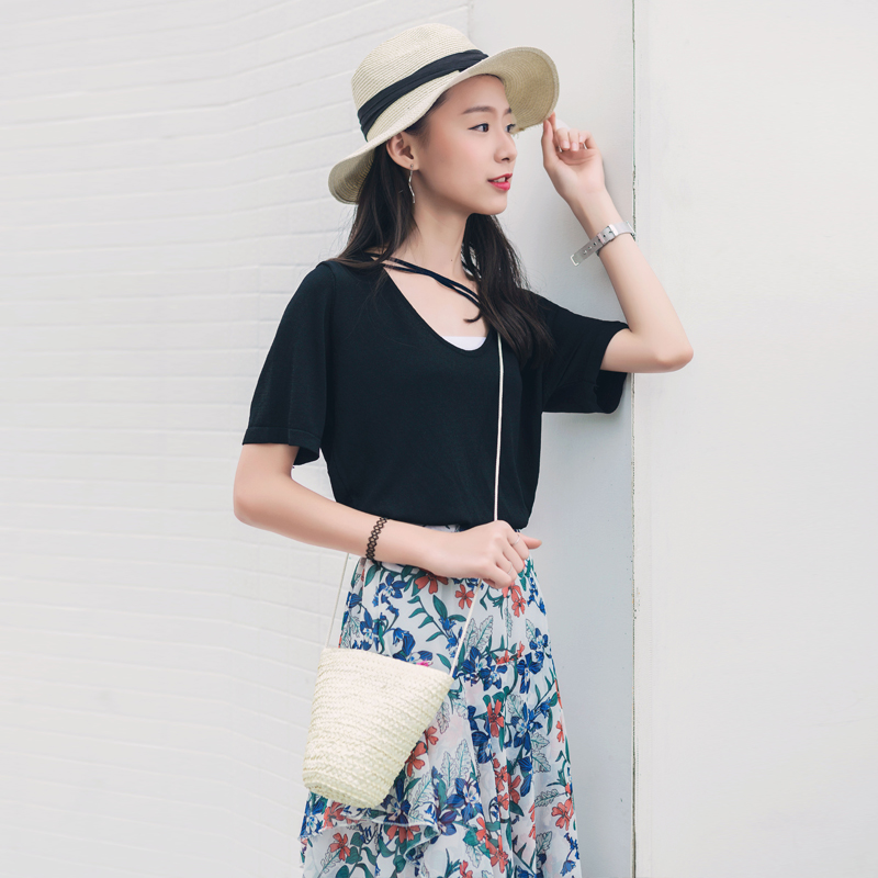 親膚透氣的冰絲針織料,帶有彈力,厚度適中上身具有垂感度