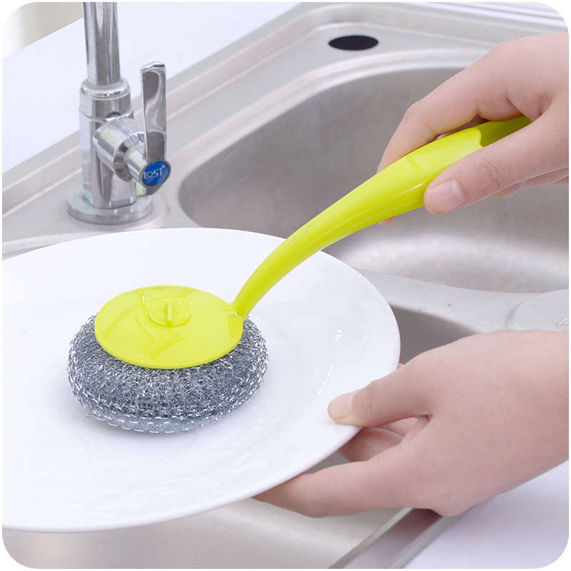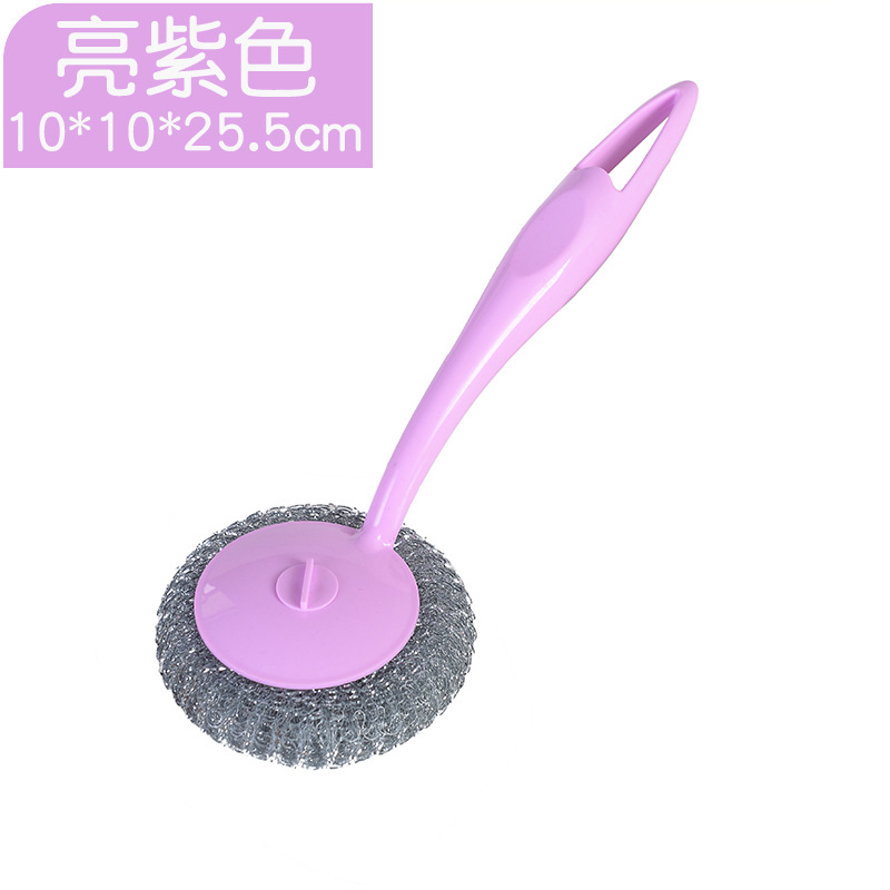 可掛式塑料清潔去油污洗碗鋼絲球 清潔球刷廚房長柄彩色鋼絲球刷