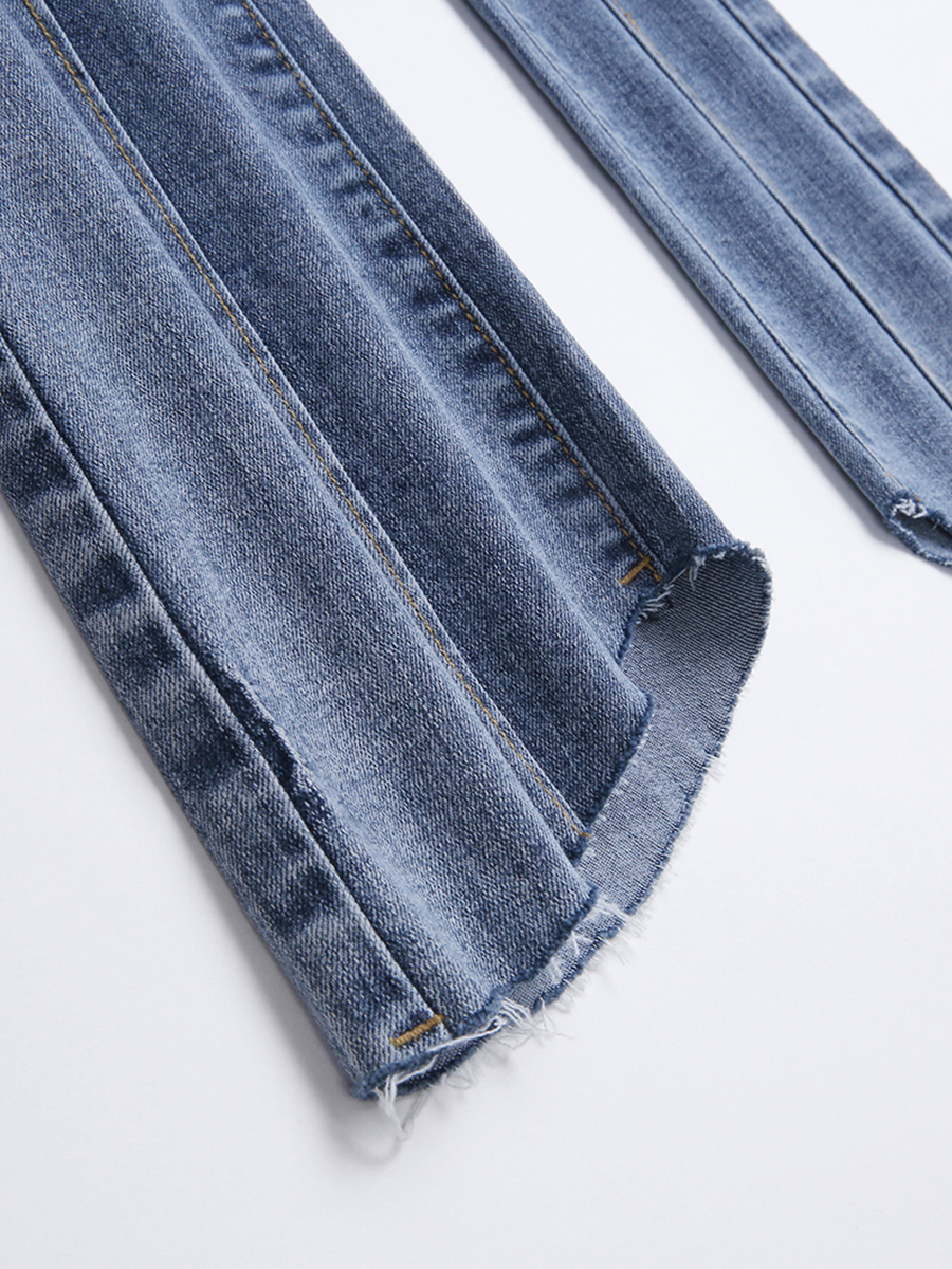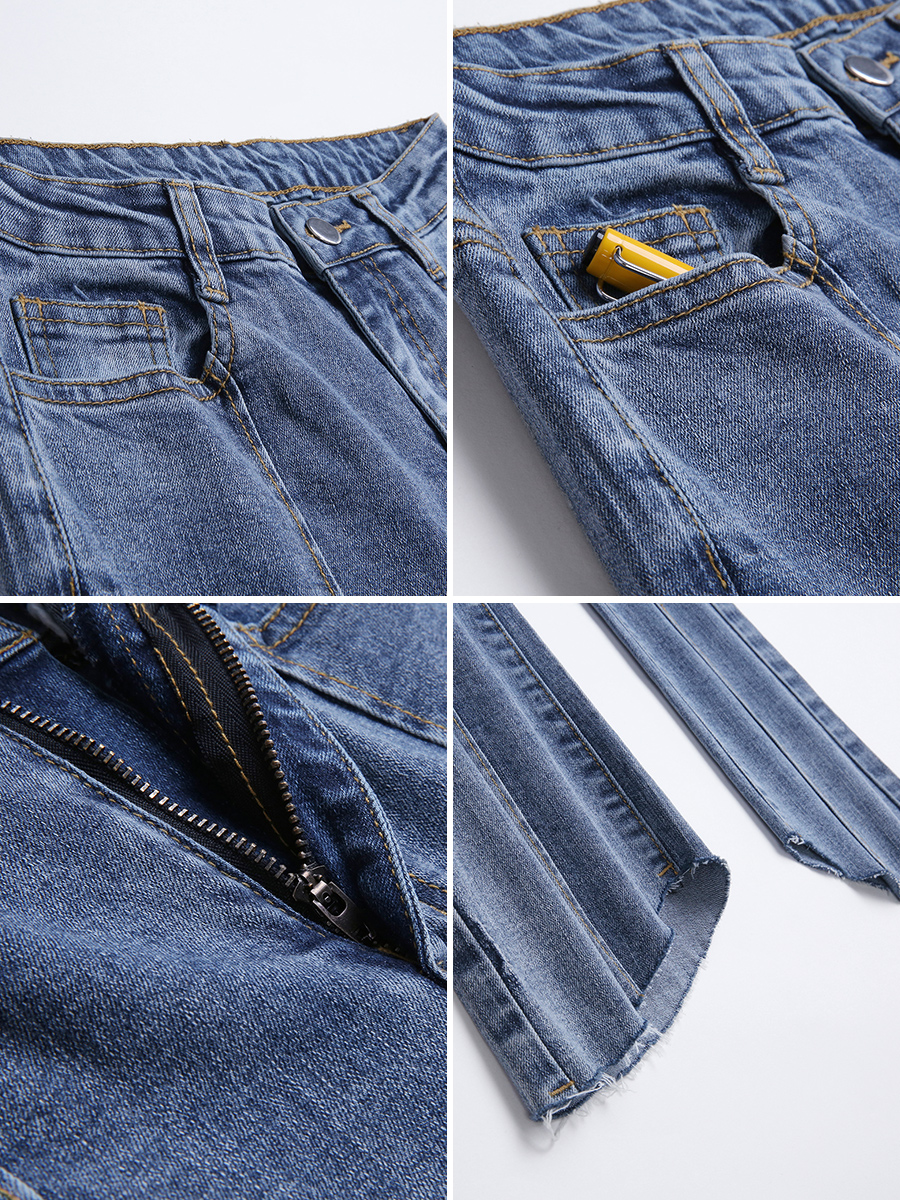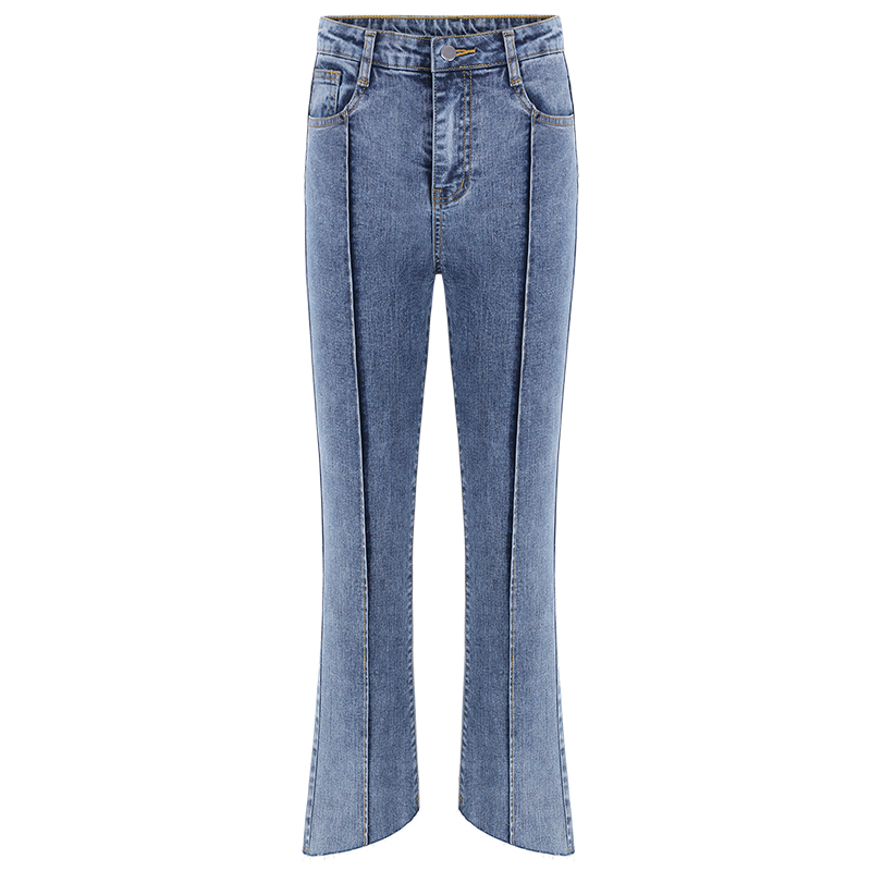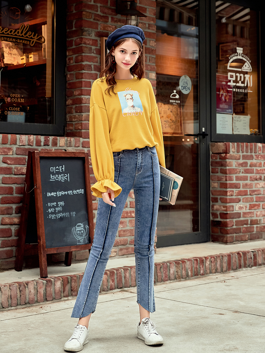MG小象高腰緊身牛仔褲女秋冬2018新款個性不規則學生chic風褲子潮