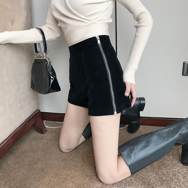 / 褲子女2018秋冬新款chic低腰時尚百搭絲絨雙拉鏈短褲休閑闊腿褲潮