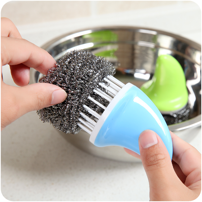 / 創意鯊魚柄鋼絲球清潔球廚房耐用洗鍋刷帶柄去污刷子不臟手鐵絲球