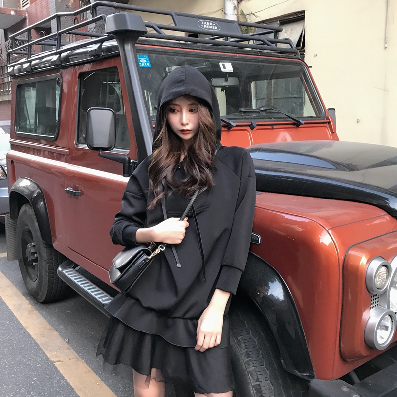 / 秋冬新款韓版衛衣連衣裙拼接假兩件紗裙少女裙長袖荷葉邊魚尾裙潮