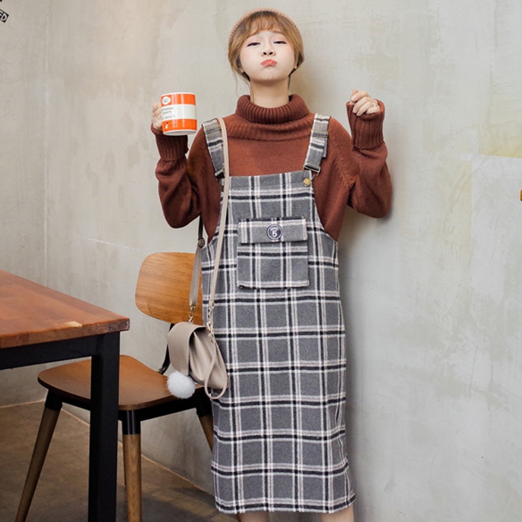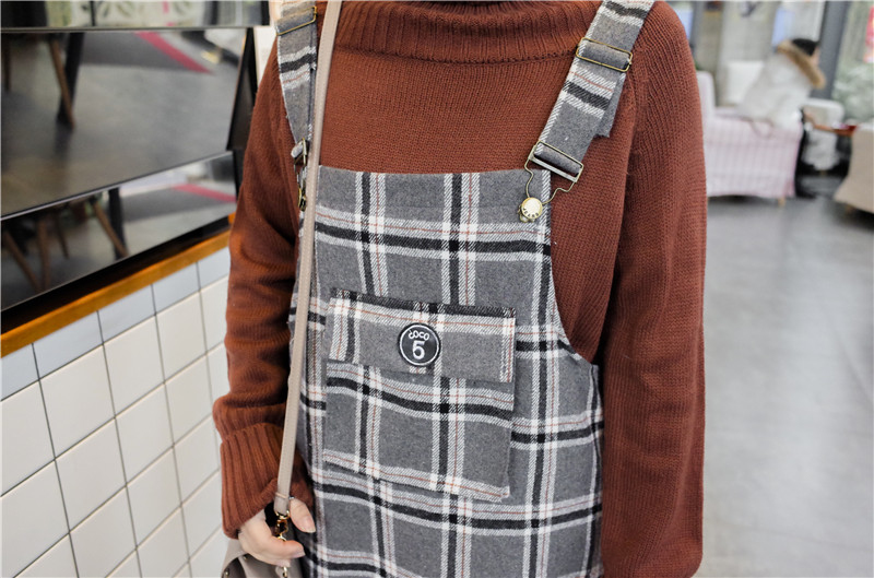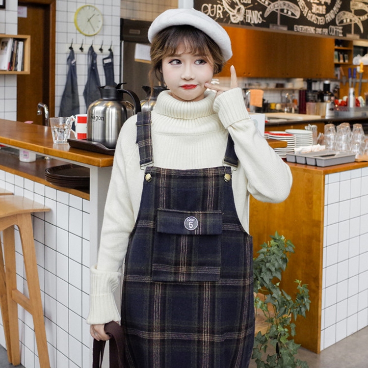 / 韓國學院風秋冬款百搭無袖格子中長款寬松呢子背帶裙連衣裙女