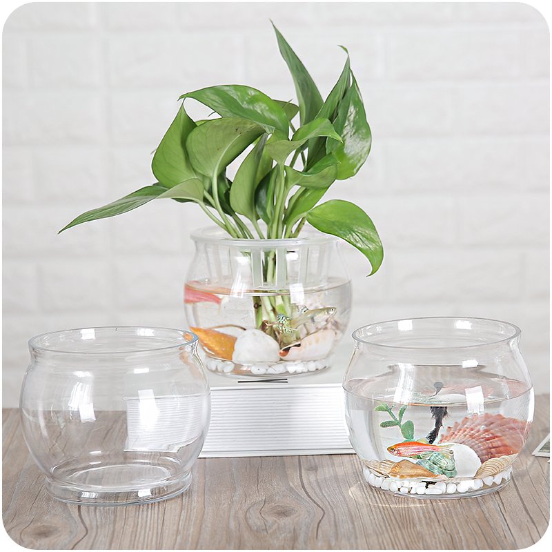 復古平口玻璃花器現代簡約小臺球瓶水培綠植花卉金魚烏龜養殖器皿