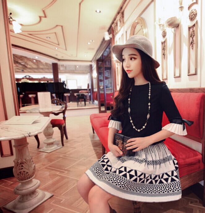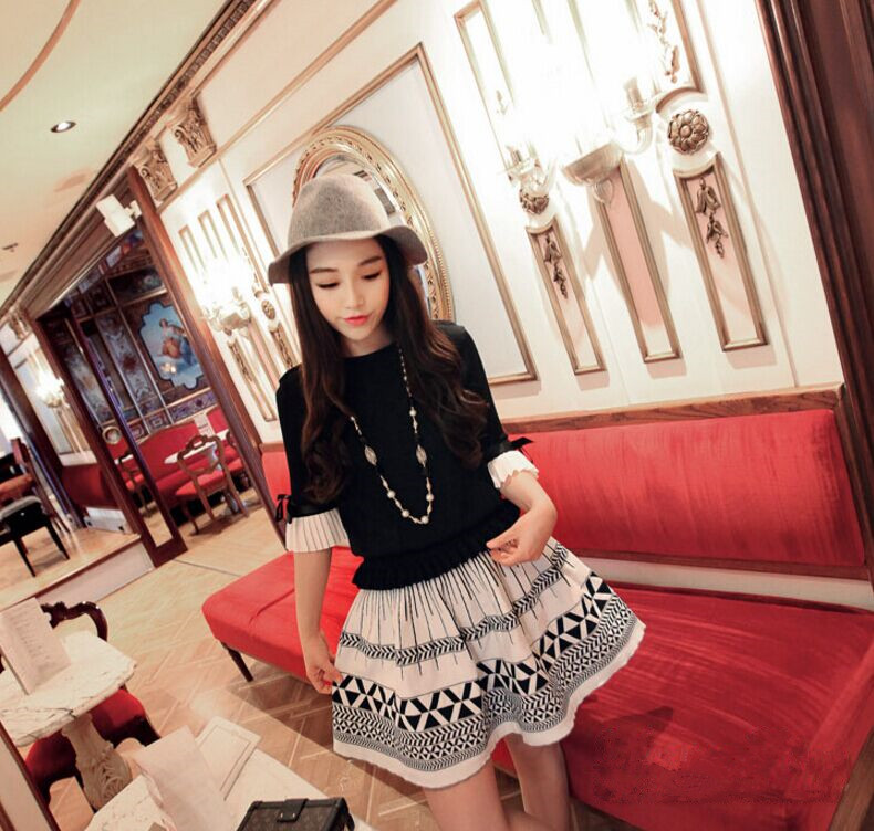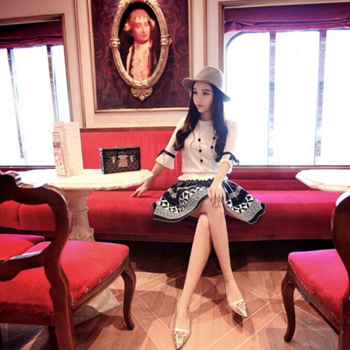 【黑毛衣+白裙子套裝】優質款