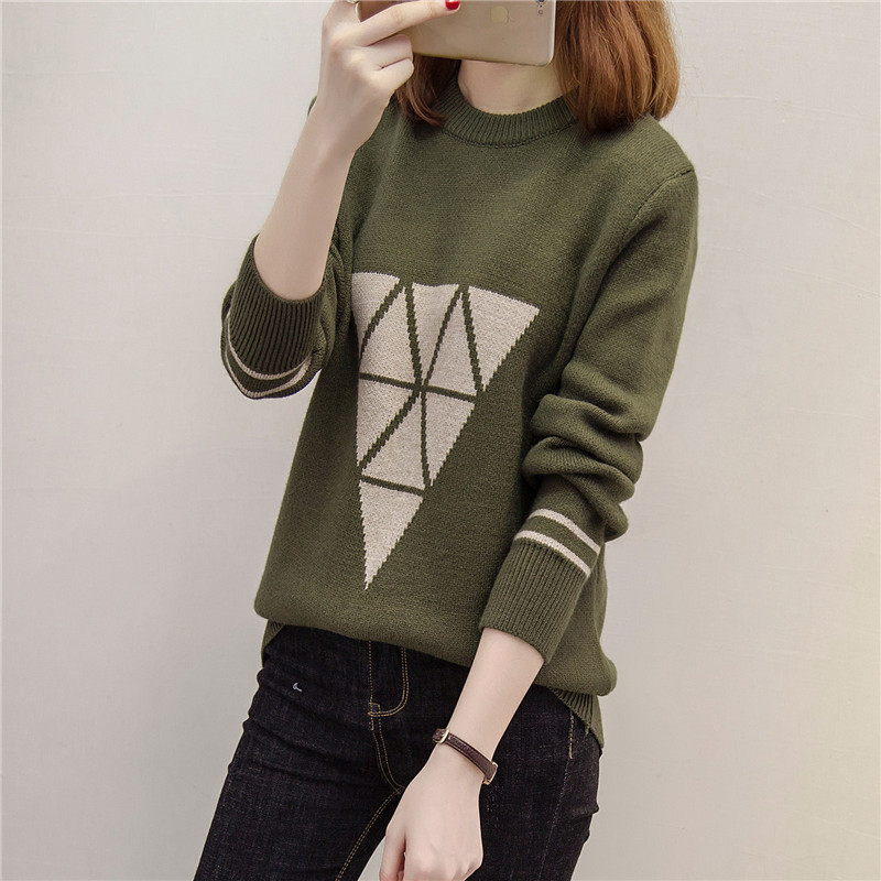 / 長袖打底衫圓領套頭寬松針織衫女上衣秋冬季加厚毛衣外套女裝潮