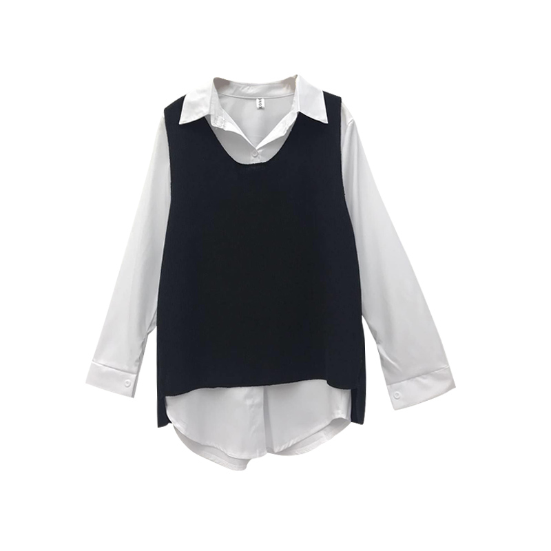 / 秋季新款學院風chic馬甲簡約性感白色長袖襯衫港風時尚套裝兩件套