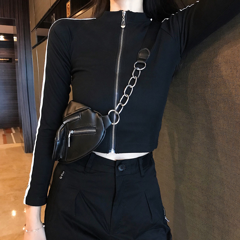 / 機車寬松直筒闊腿工裝褲時尚套裝長袖黑色顯瘦性感外套女兩件套潮