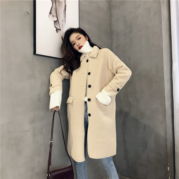 / 復古溫柔冬季新款慵懶加厚單排扣立領羊羔毛外套