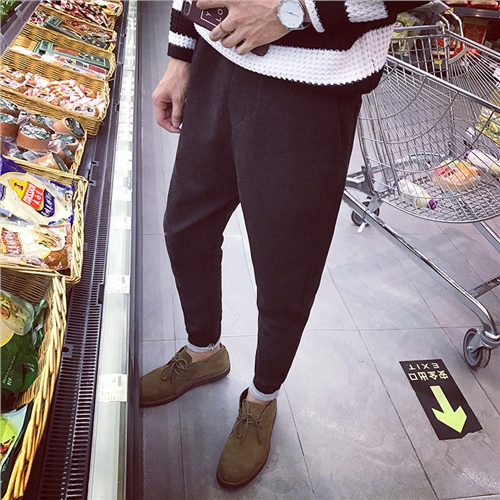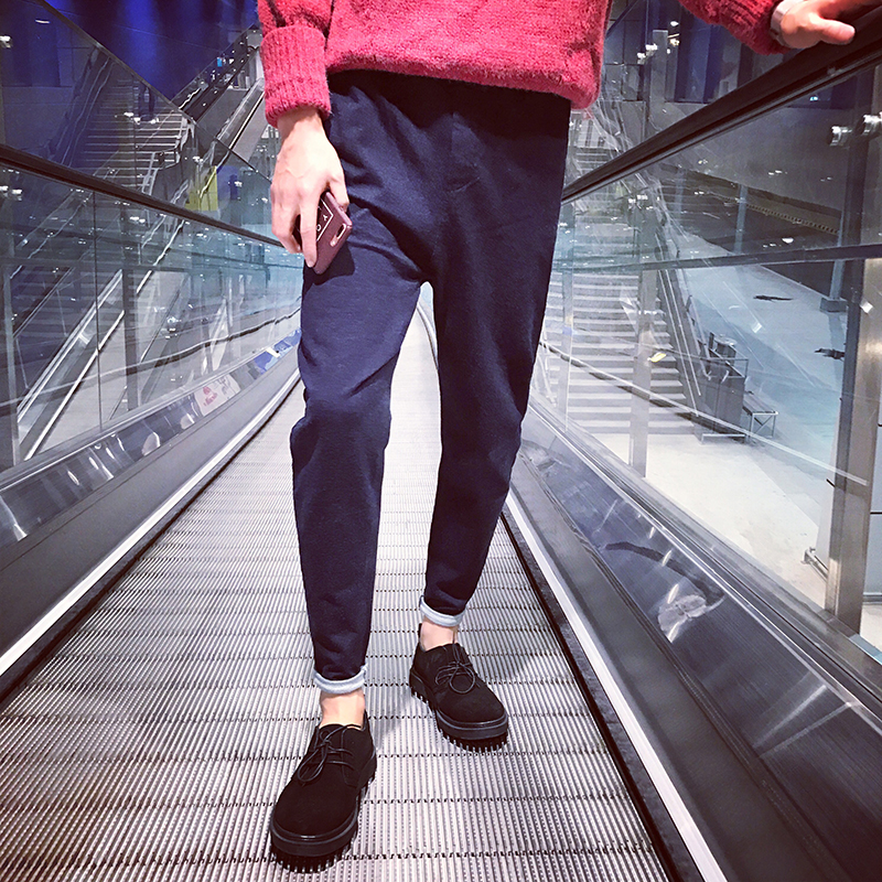 / 男裝韓版簡單加厚冬季修身男士小直腳休閑褲男褲