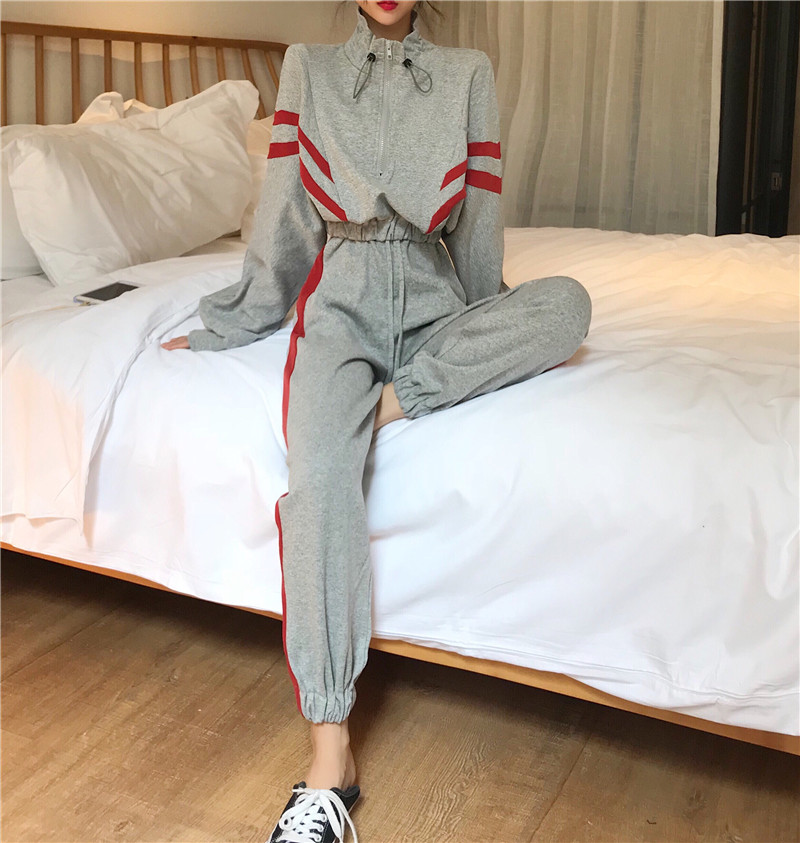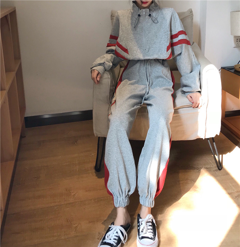 / 港味2018秋季新款時尚套裝長袖拼接上衣松緊腰休閑束腳褲兩件套女
