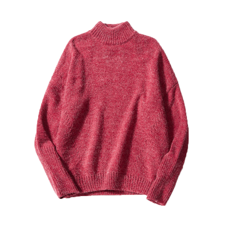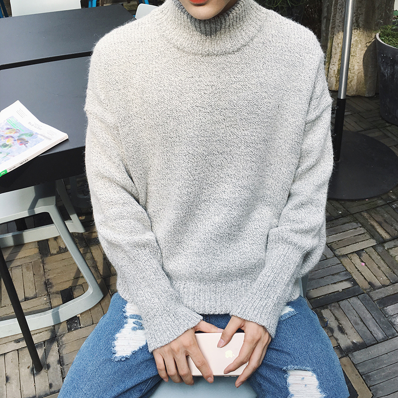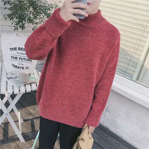 新款男裝加厚半高領針織衫休閑百搭純色毛衣外套男