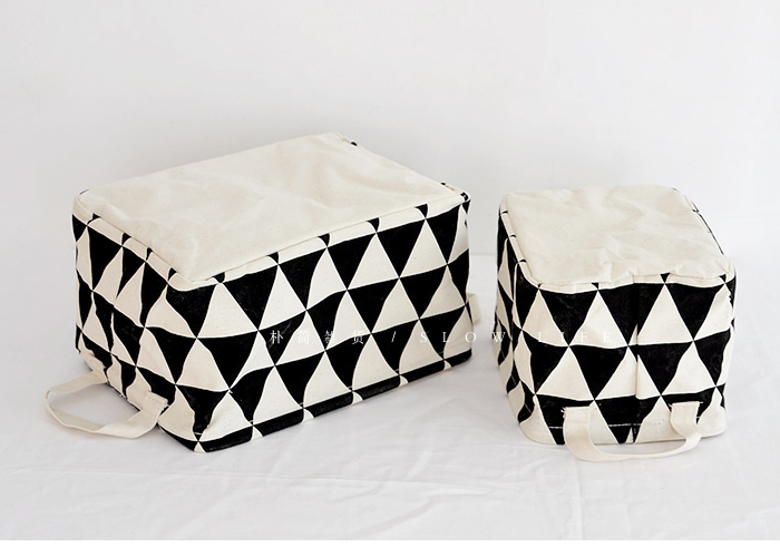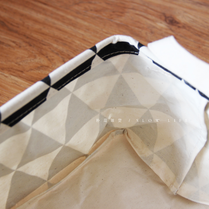 外貿單黑白三角字母棉麻桌面收納籃收納盒 布藝儲物籃家居收納筐