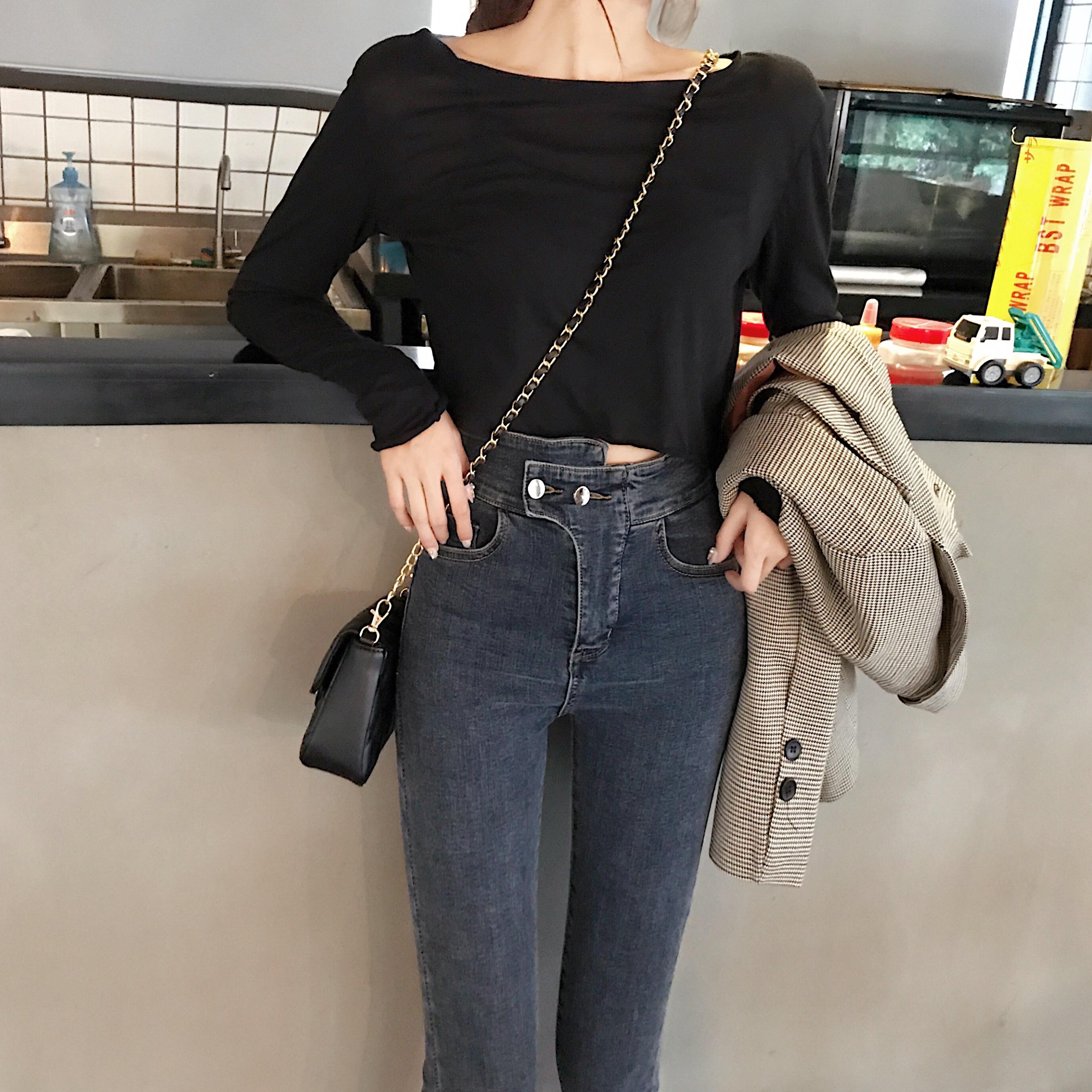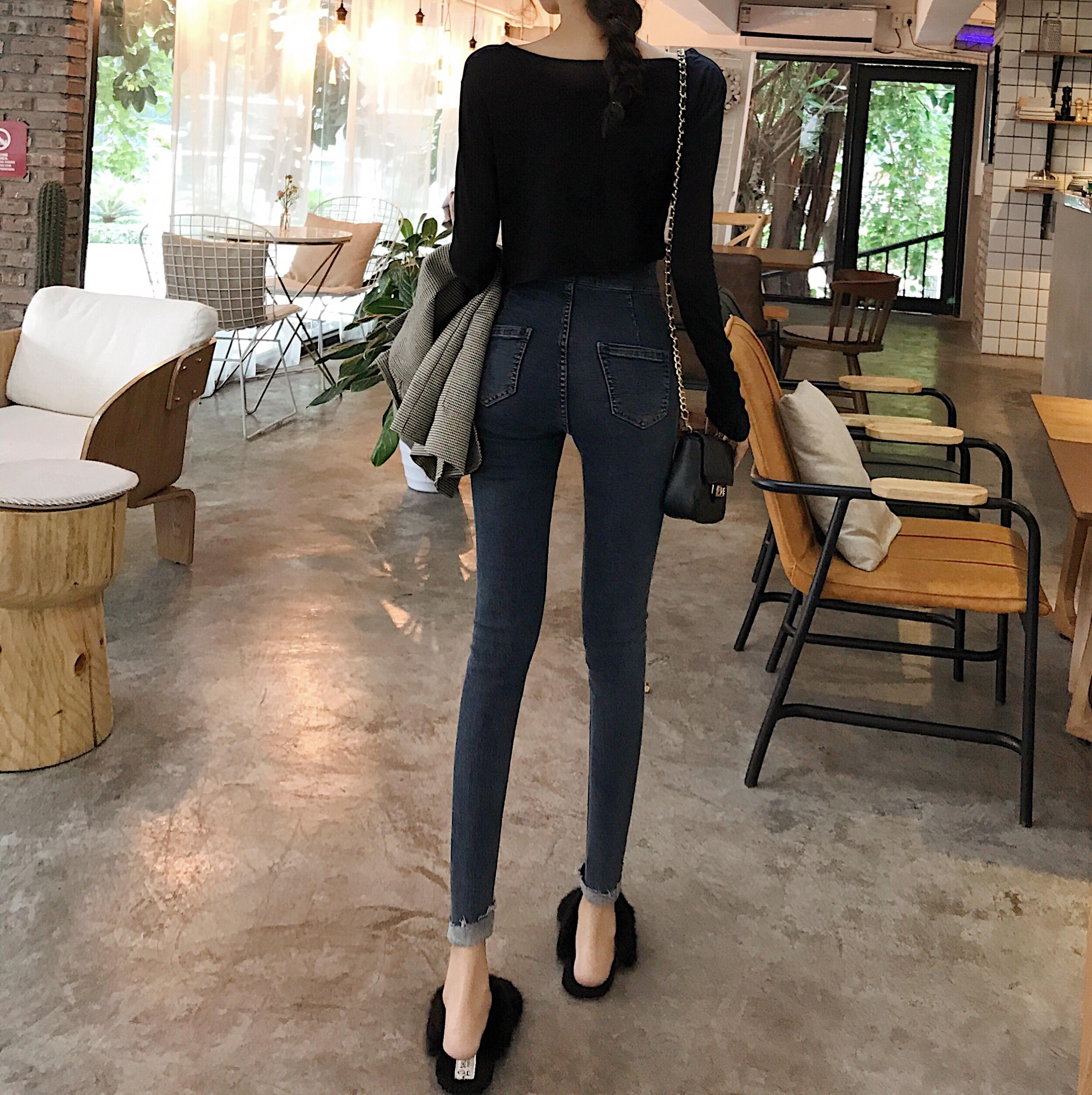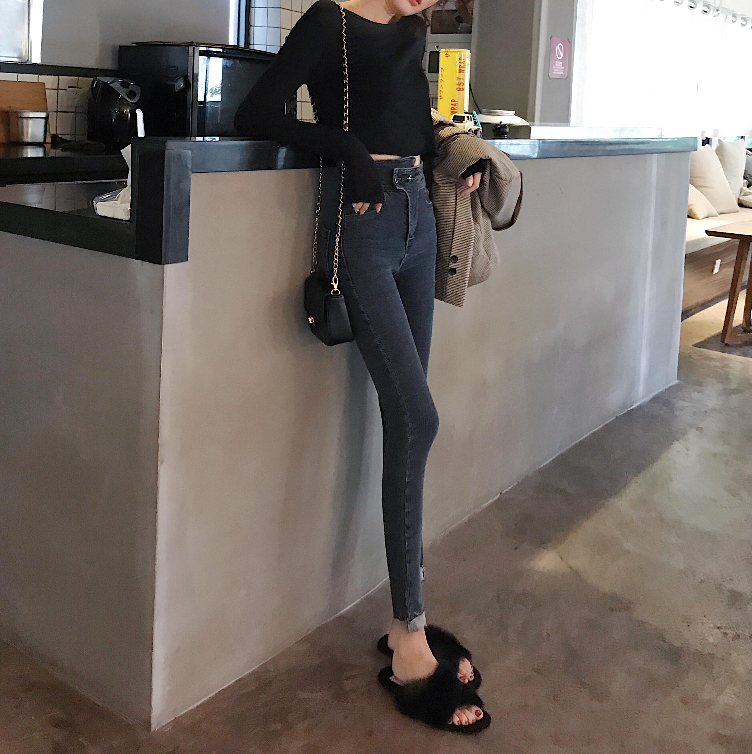 / 韓國chic新款時尚褲子高腰緊身加絨牛仔褲百搭顯瘦小腳鉛筆褲女潮