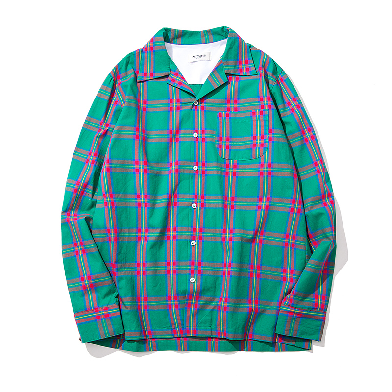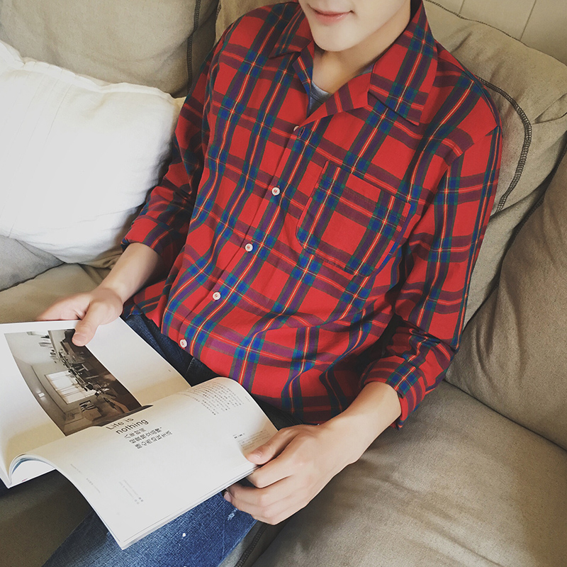 / 秋季新品韓版大格子印花小清新襯衣修身男長袖襯衫