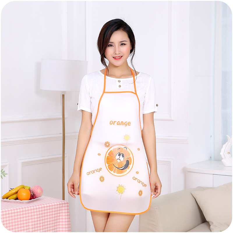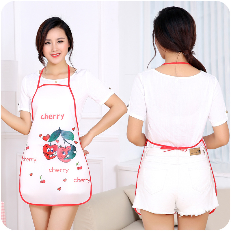 韓版時尚防水圍裙夏季廚房無袖可愛水果印花家用防油污系帶軟圍裙